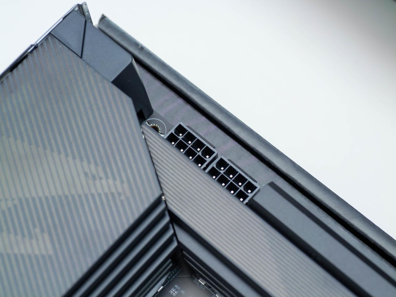 同時我們可以看到CPU供電接口和主板供電接口處均採用了實心針腳供電插座,提供了更加穩定的導電性能,同時還能減少重複插拔時造成的磨損,更適合目前整機功耗越來越高的裝機趨勢。