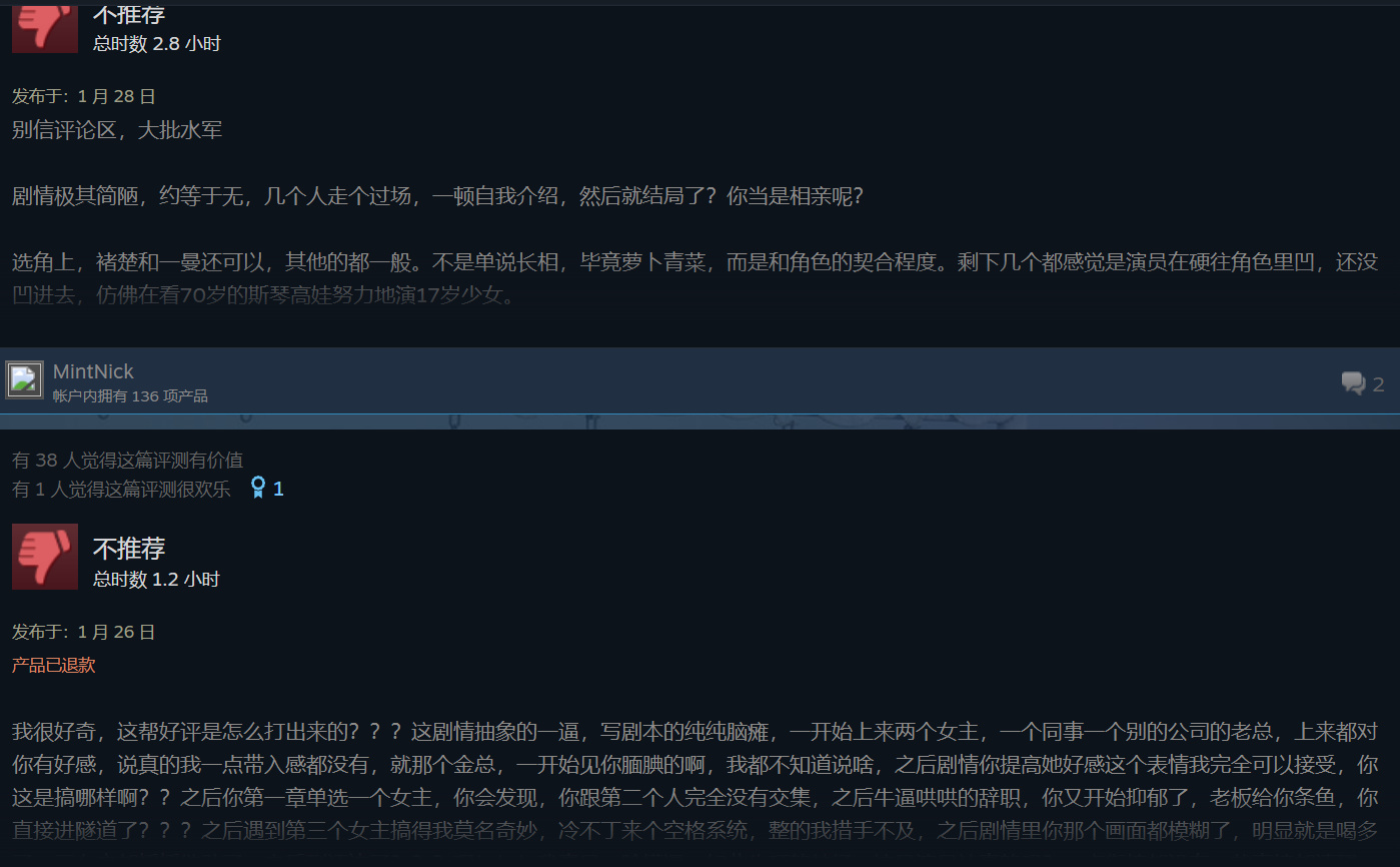 由於我們第一次發行STEAM遊戲, 有做的不好的地方, 我們會虛心接受, 即時改正, 另外真人互動遊戲大部分都是影視素材, 與其他3A大作從結構上、可玩遊戲時長上有着本質區別, 還希望大家多多支持正版, 保護原創內容