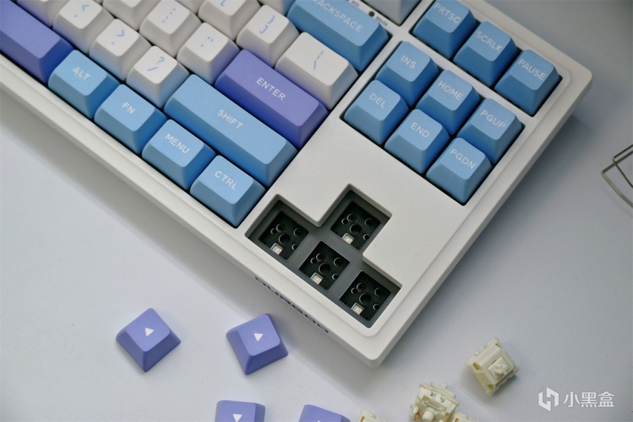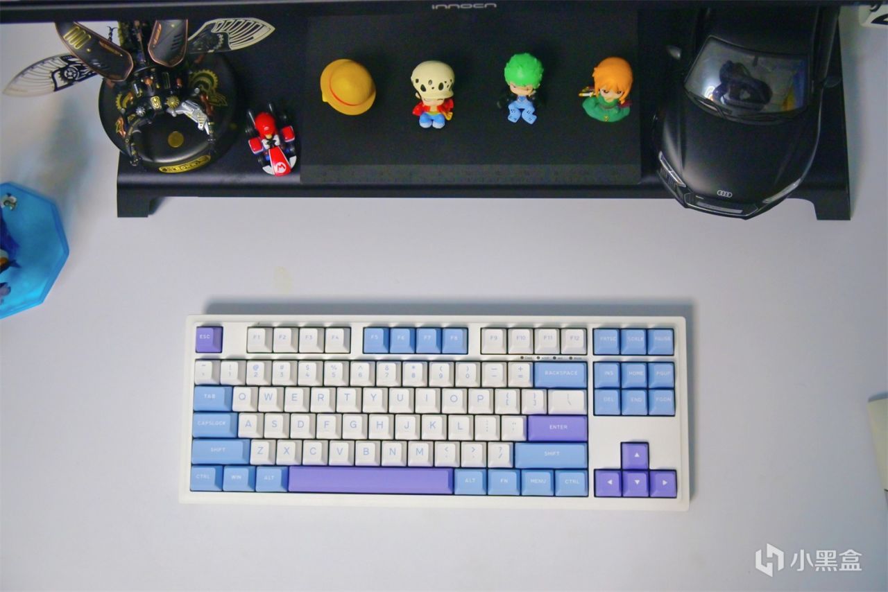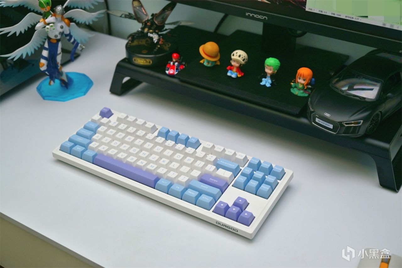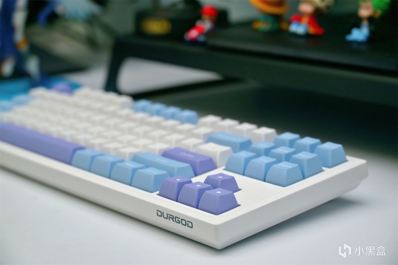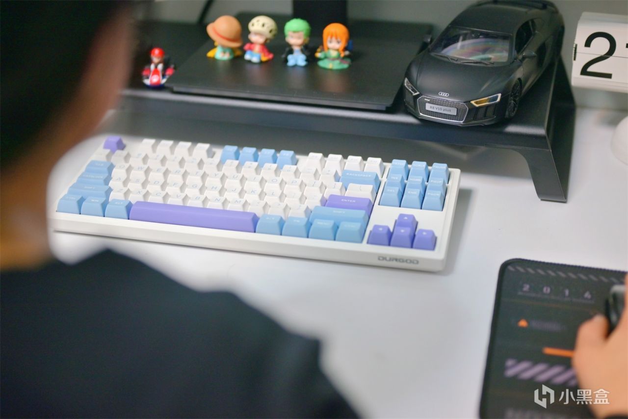 杜伽K100採用了87配列,在不經常使用數字鍵盤的情況下,87配列是最舒服的狀態,既能滿足日常使用需求,又不會佔用太多桌面空間。