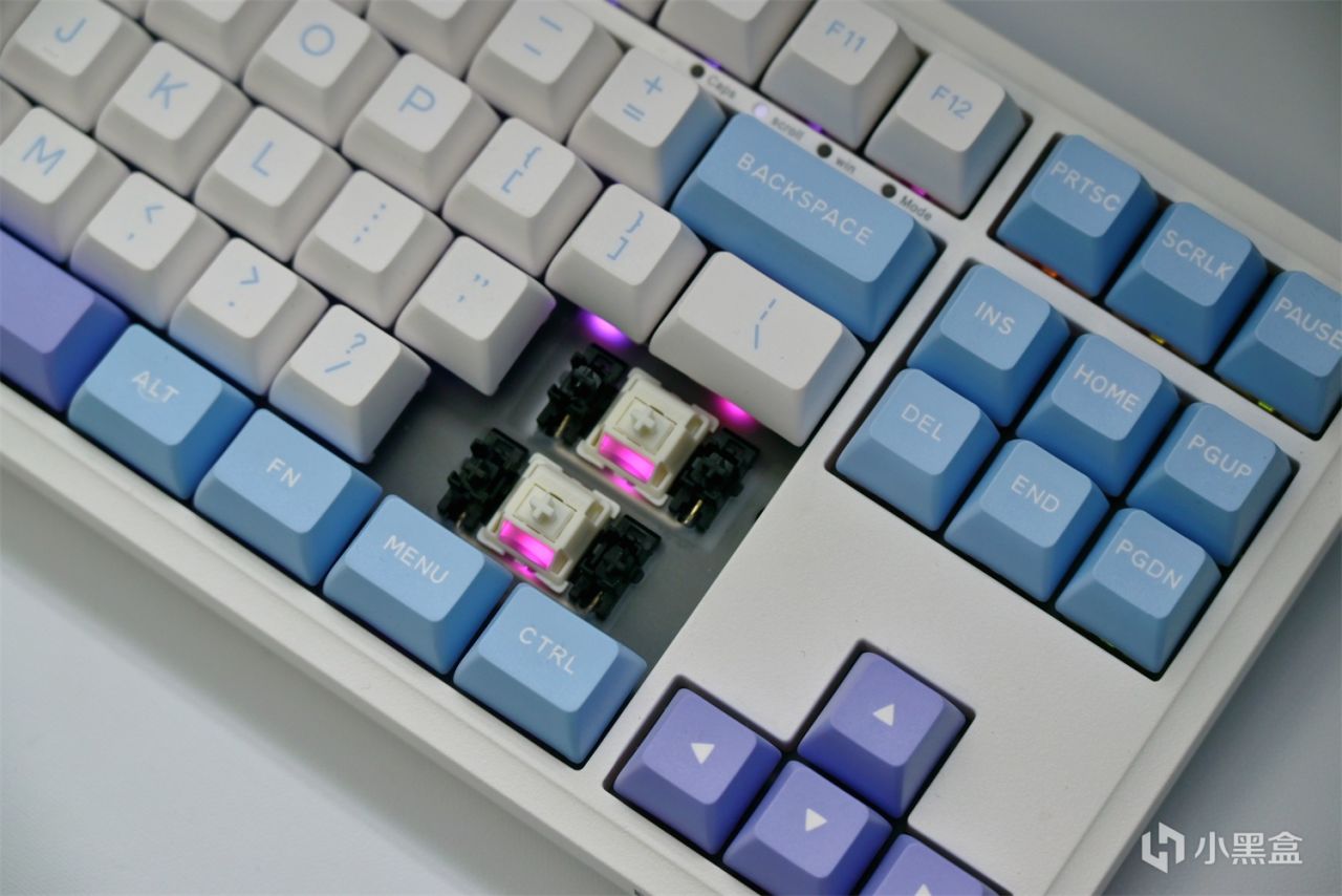 冰莓的配色給人帶來一種小清新的感覺,方方正正的設計非常有杜伽風格,針對不同的位置,使用不同的顏色來區分鍵盤的各個區域。