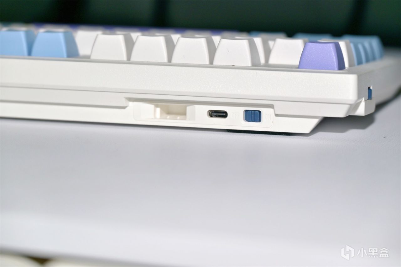在鍵盤的後面有開關鍵,Type-C插口和2.4G接收器,接收器很好的卡在槽內,在加上磁吸的設計,讓接收器不易丟失。