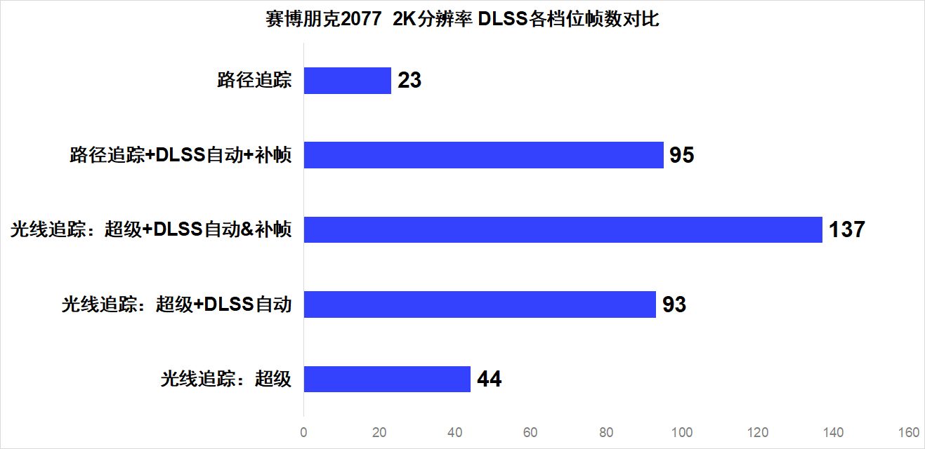 在更爲極致的路徑追蹤模式下,經過DLSS 3的補幀處理,幀數可以保持95幀,相較於未開啓狀態下的幀數提升了四倍。可以說這是目前AI對於遊戲玩家最大的利好了。
