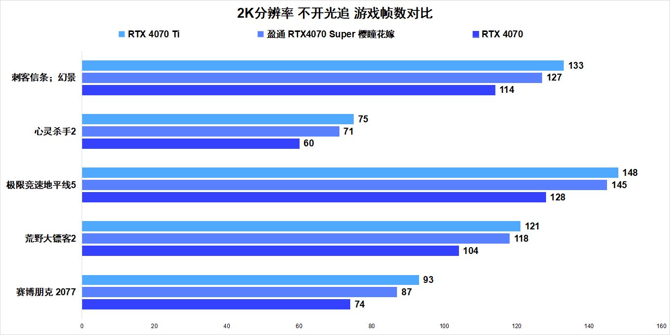除此之外,我還測試了其他幾款遊戲,幀數彙總如上。從數據中可以看出,即使在未開啓DLSS功能的情況下,4070Super在2K分辨率依然能夠讓絕大部分3A遊戲達到60幀以上的及格線。