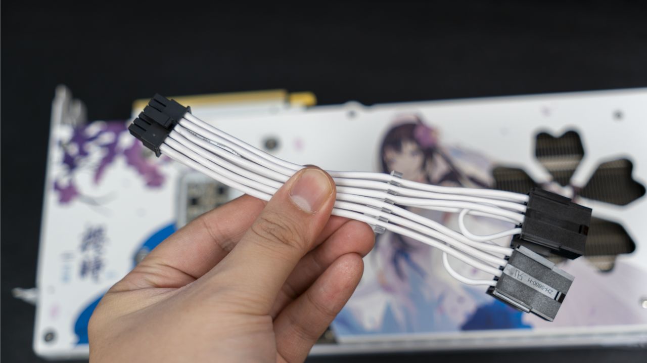 顯卡供電使用的是40系強制性的12VHPWR接口,需要搭配ATX3.0電源使用。你如果沒有ATX3.0電源,盈通也在包裝內附送了一根雙8 PIN轉接12VHPWR接口的純白色線材,而且自帶理線梳,保證線材美觀度。