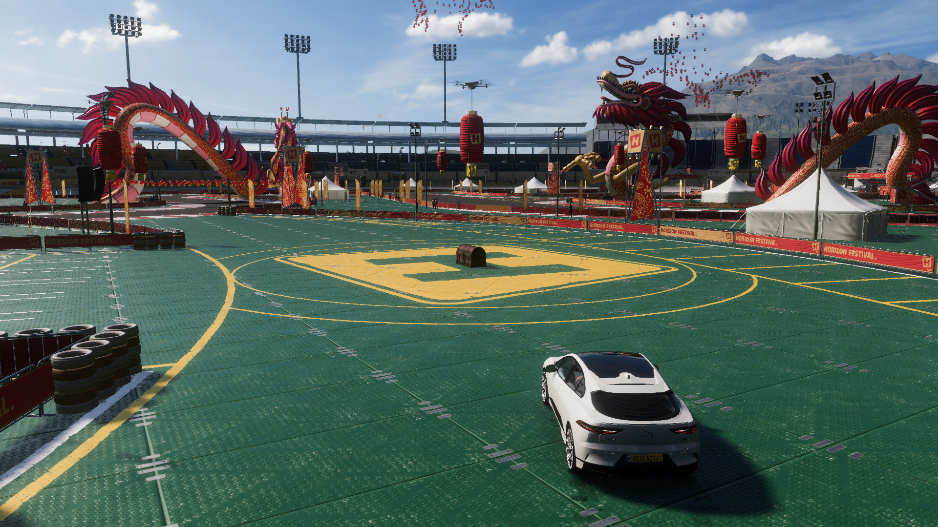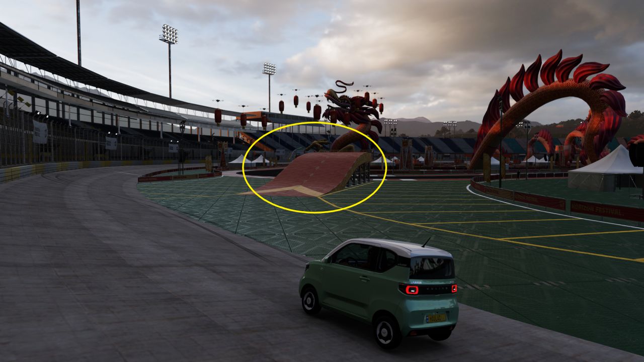 驅車抵達該處,可在場地正中心處找到寶箱,破壞即可獲得獎勵,還能順便完成相片挑戰。