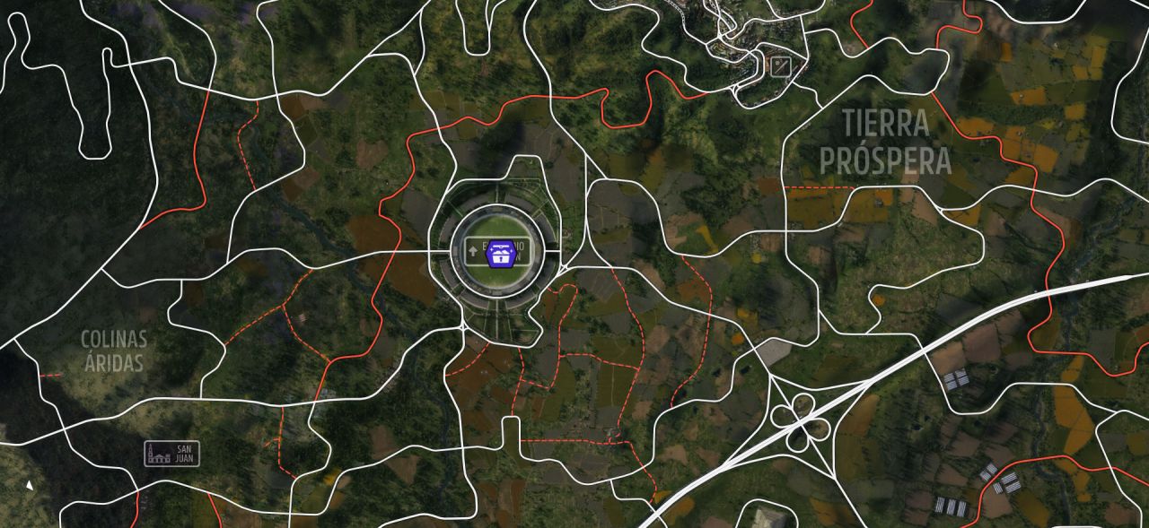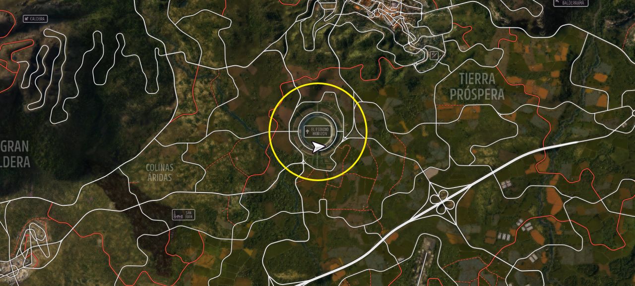 原來的體育場被改造成了漂移競技場(位置如圖),完成相片挑戰時會自動完成。