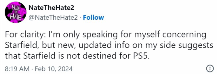 2、近期報道指出多款Xbox第一方遊戲將登陸多平臺,但爆料人NateTheHate否認了《星空》將登陸PS5的消息,不過他仍相信其他微軟第一方遊戲會跨平臺發佈。