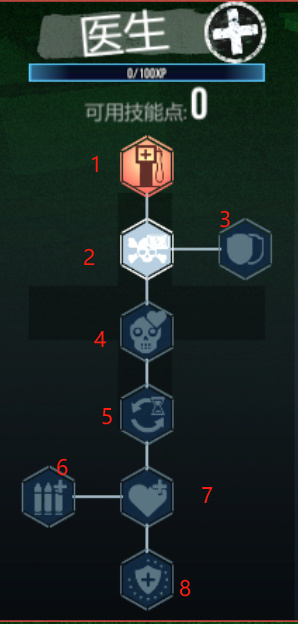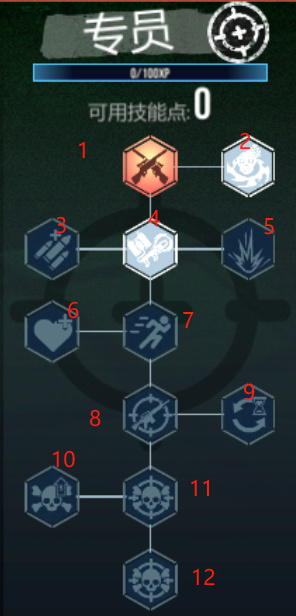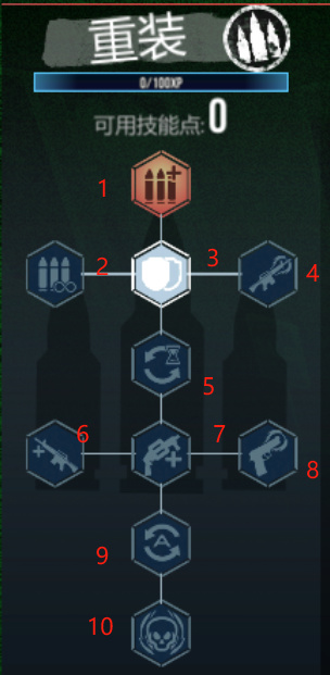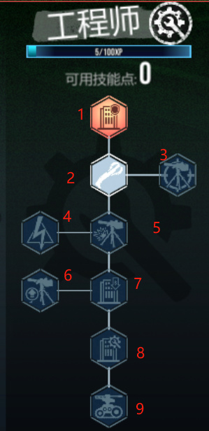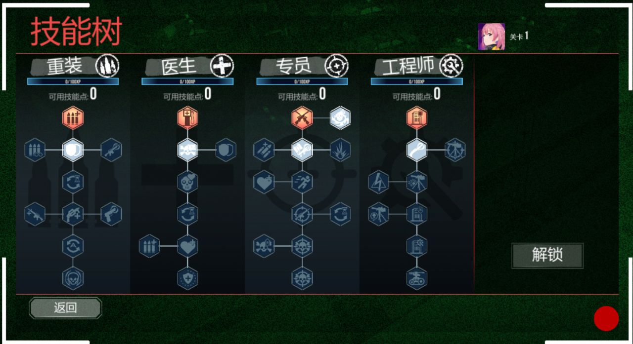 職業分爲:重裝、醫生、專員、工程師,這四大職業。0/100是經驗值