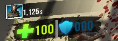左下角是人物的金錢(回合結束可購買槍支、物品等),綠色的是血量、藍色的護盾