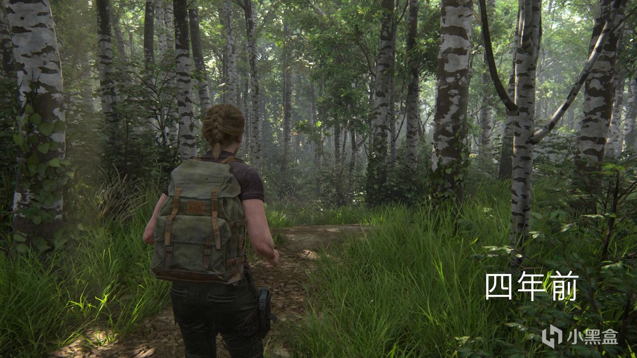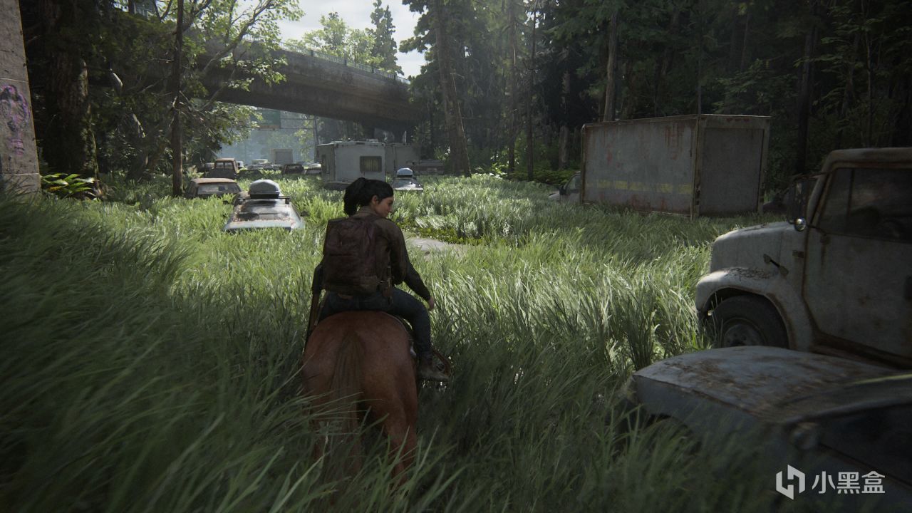 當然,本作在植被的環境動態交互上,比以“風”爲核心的《對馬島之魂》還是略遜一籌。同時,本作也通過無法跨越的灌木來實現場景的分割以降低模型數量,並藉助大量的播片與轉場動畫以及PS5的高速SSD來實現小場景的隱藏加載。地形的限制與大量播片的插入,也讓以沉浸式電影化敘事爲主打的本作略有些出戏,但並不妨礙頑皮狗憑藉其高超的技術力將一個虛幻卻幾近真實的世界搬到了每一個玩家的熒幕之中。