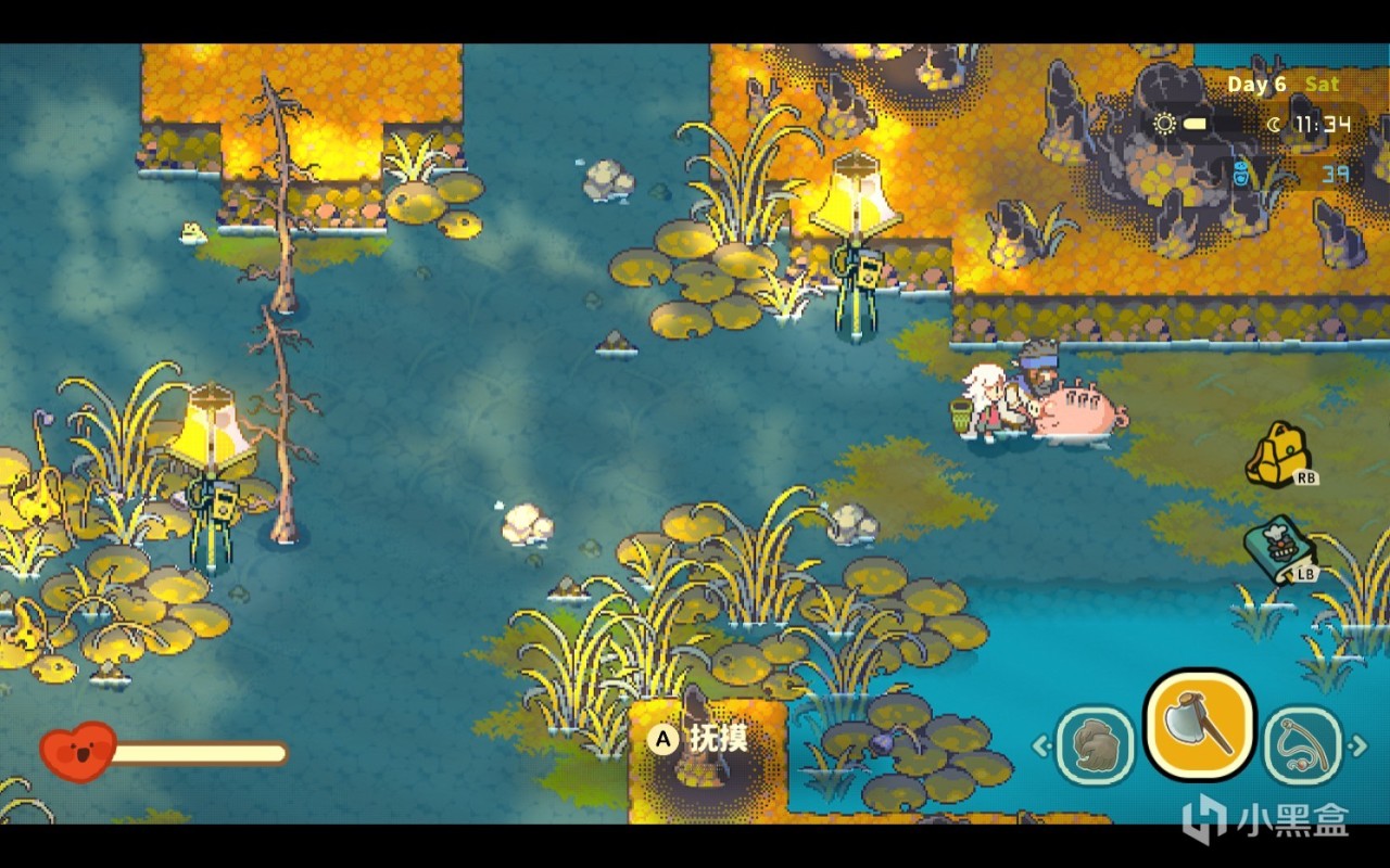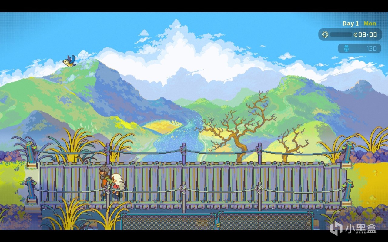 遊戲的美術風格是本作的一大亮點,即便在獨立遊戲中普遍都採用像素風格作爲遊戲的畫面,《風來之國》的畫面卻出奇地好看,這一點在dlc的種田玩法中得到了徹底的展現。無論是採用動態光照,在遊戲中隨着時間流逝而迎來晝夜交替,盡顯海鷗鎮風情;還是舒適嫺熟的色彩搭配,不同天氣不同時間下的海鷗鎮有着不一樣但是同樣好看的主色調。每當我前往小鎮,經過木橋,看見那多姿多彩的山谷,都不由得停駐片刻,欣賞美景。