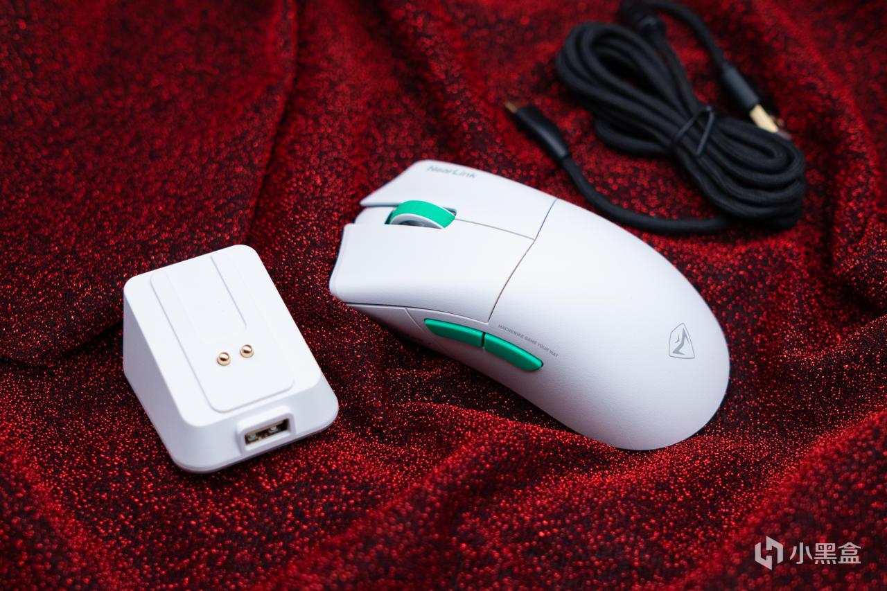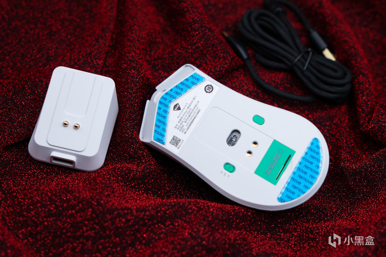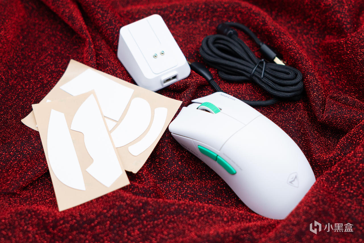 除無線充電底座之外兩款鼠標的裝箱清單大同小異,數據線,一組防滑貼,以及說明書等,編織數據線柔軟度還行,就是白鼠標用黑線有點不太和諧,官方反饋是因爲新產品物料不足的原因,後期會換成白色的線: