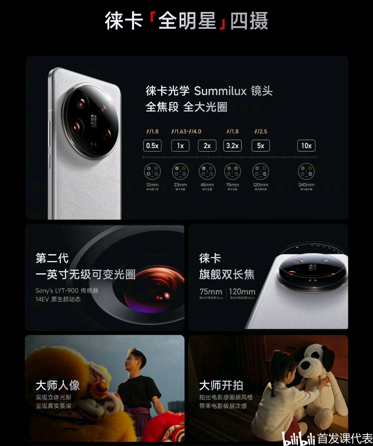 ◆ 後置:50MP 主攝(索尼 LYT-900,OIS, f/1.63-f/4.0 可變光圈,ADL 超低反鍍膜)+ 50MP 超廣角(索尼 IMX858,f/1.8,ADL 超低反鍍膜)+ 50MP 人像長焦(索尼 IMX858,OIS,f/1.8,3.2X)+ 50MP 潛望長焦(索尼 IMX858,OIS,f/2.5,5X),兩顆長焦均支持微距,30 倍以上變焦支持 UltraZoom beta AI 增強,支持全焦段 8K 視頻拍攝;