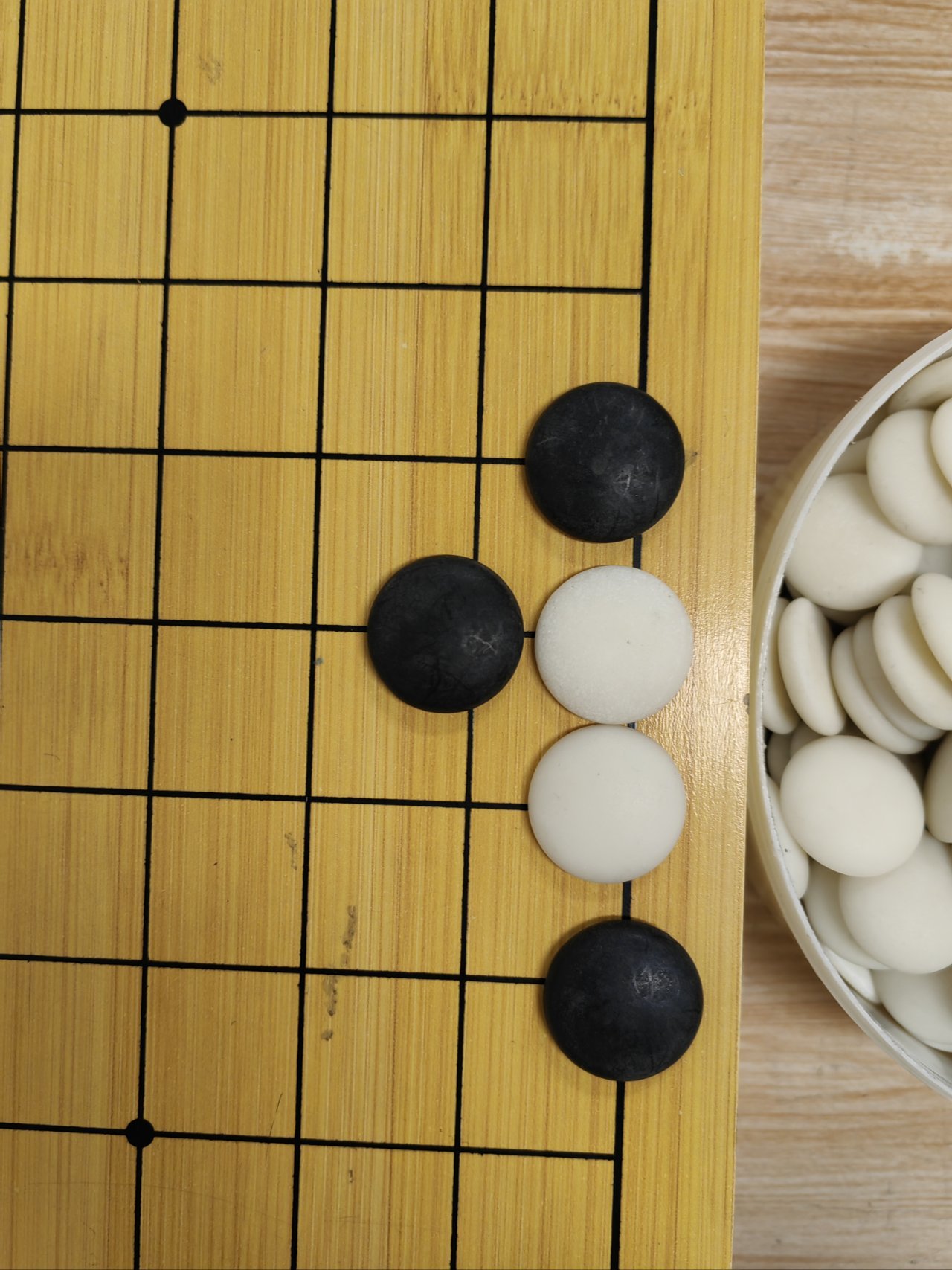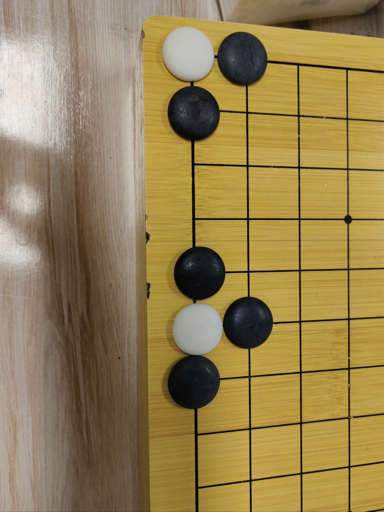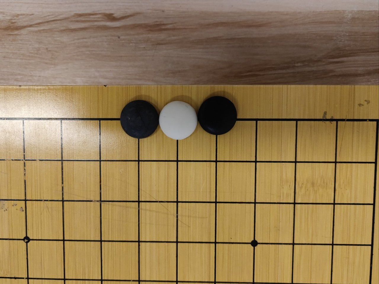 邊上的一顆棋子只有3口氣,角上的棋子只有2口氣。