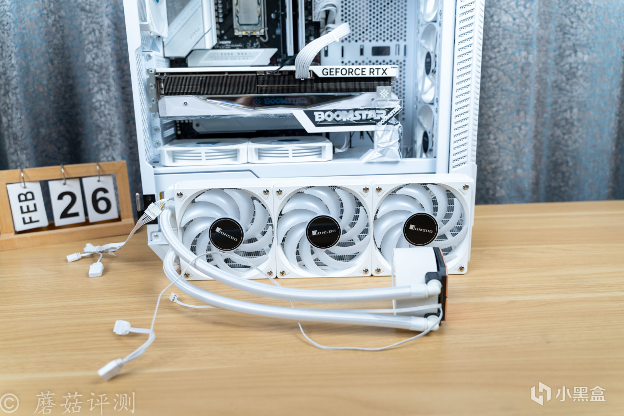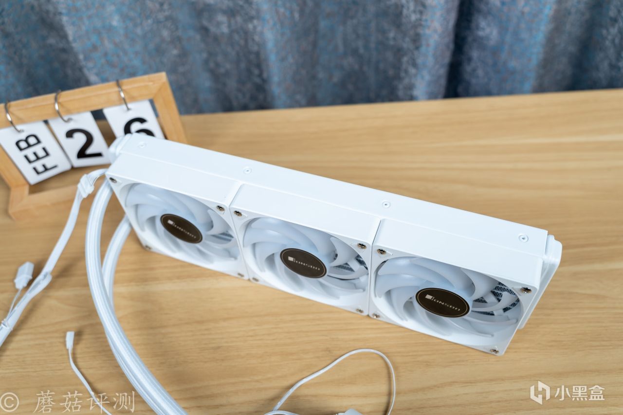 ▼水冷排的冷排風扇已經預安裝到水冷排上了,冷排風扇也是白色的。