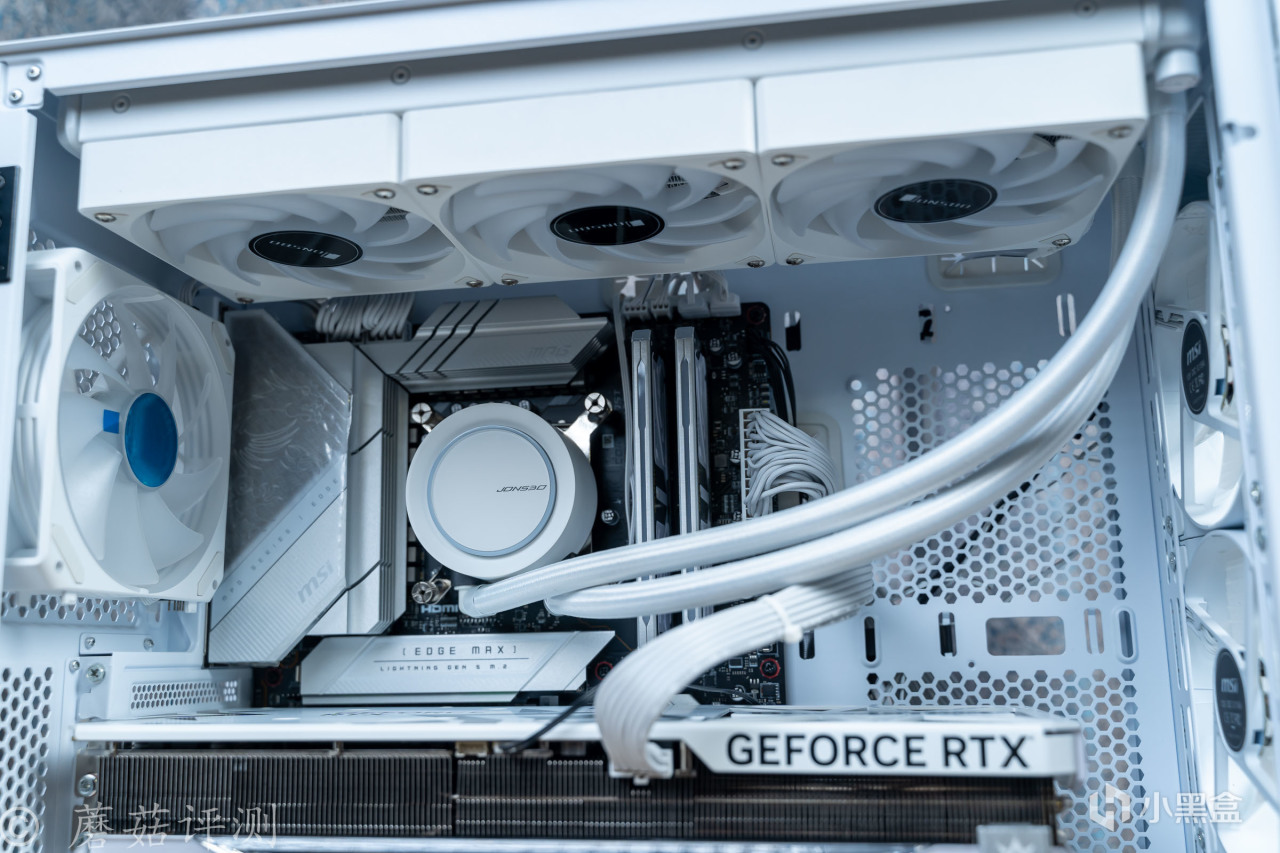 ▼水冷頭輕鬆固定,水冷頭這裏採用下出水管安裝,水冷排安裝到機箱的頂部,整體效果很不錯。