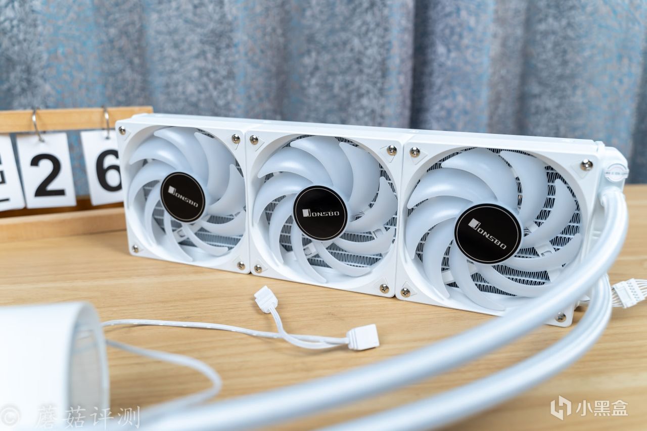 喬思伯這款TG360一體式水冷,整體表現非常不錯,水冷的顏值非常漂亮,整體採用白色配色,水冷頭和冷排風扇的燈效都非常不錯。另外在安裝體驗方面,表現也非常不錯,水冷頭的頂蓋支持旋轉,任意安裝條件下,都能讓喬思伯的LOGO保持水平,三把冷排風扇僅出一根供電線和燈效線,日常走線、理線更加簡單方便。