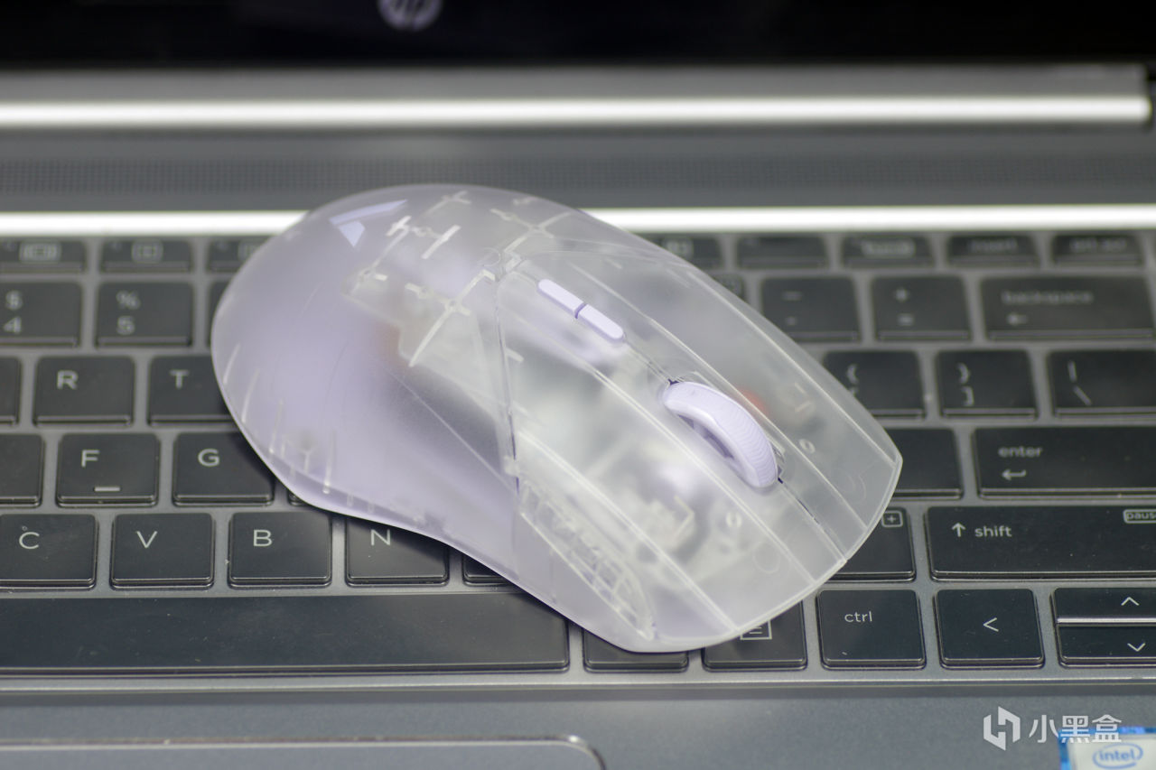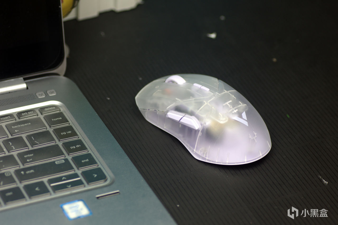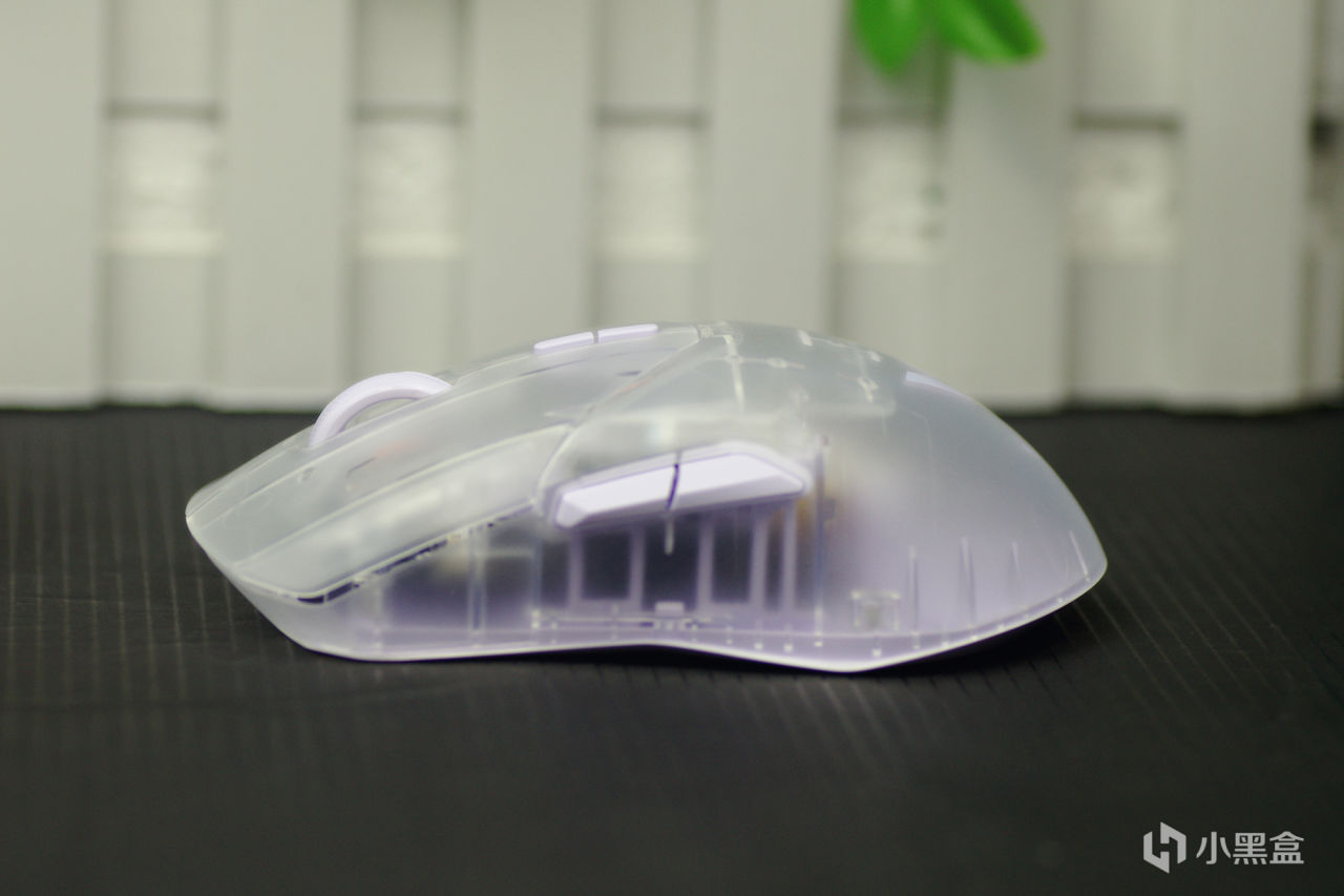 雷柏VT9 Air鼠標的外觀設計依然延續了VT9系列的經典設計,區別在外殼採用的是半透材質,表層採用的是磨砂工藝,我手上這個是透明紫配色,鼠標整體的顏值和質感都非常不錯,放在桌面上也很好看。