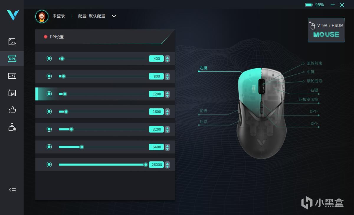雷柏VT9Air搭載原相定製3398光學引擎,11檔靜默高度可調,50-26000可調節DPI,滿足用戶的精細化操作要求,遊戲體驗非常棒。在實際測試中,無論是快速的鼠標移動還是細微的操作,VT9 Air都能夠準確捕捉並迅速執行,滿足了專業玩家對於遊戲性能的嚴苛要求。