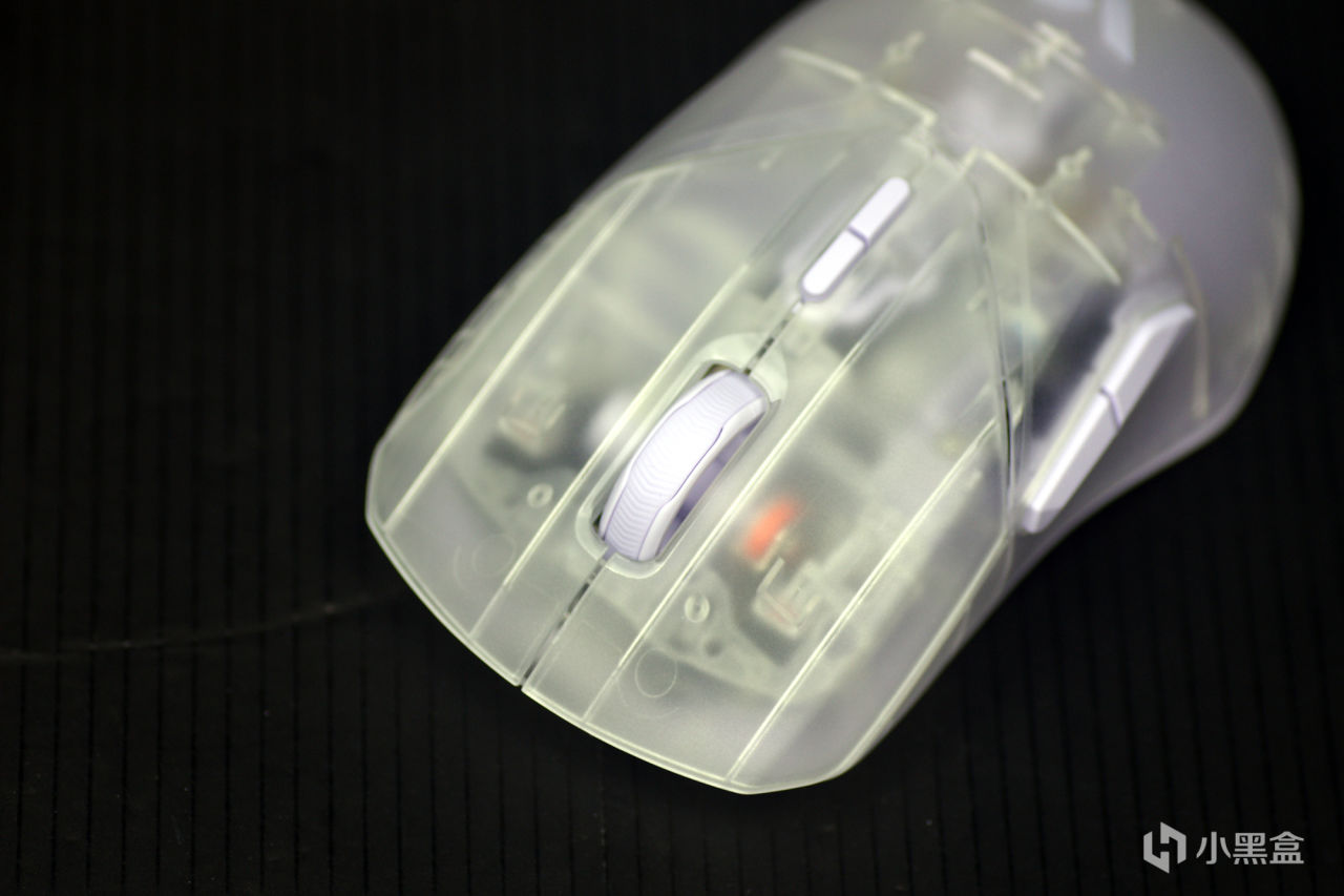 DPI檔位共有7檔可調,在按壓調節時機身內部有不同顏色的燈光提示。