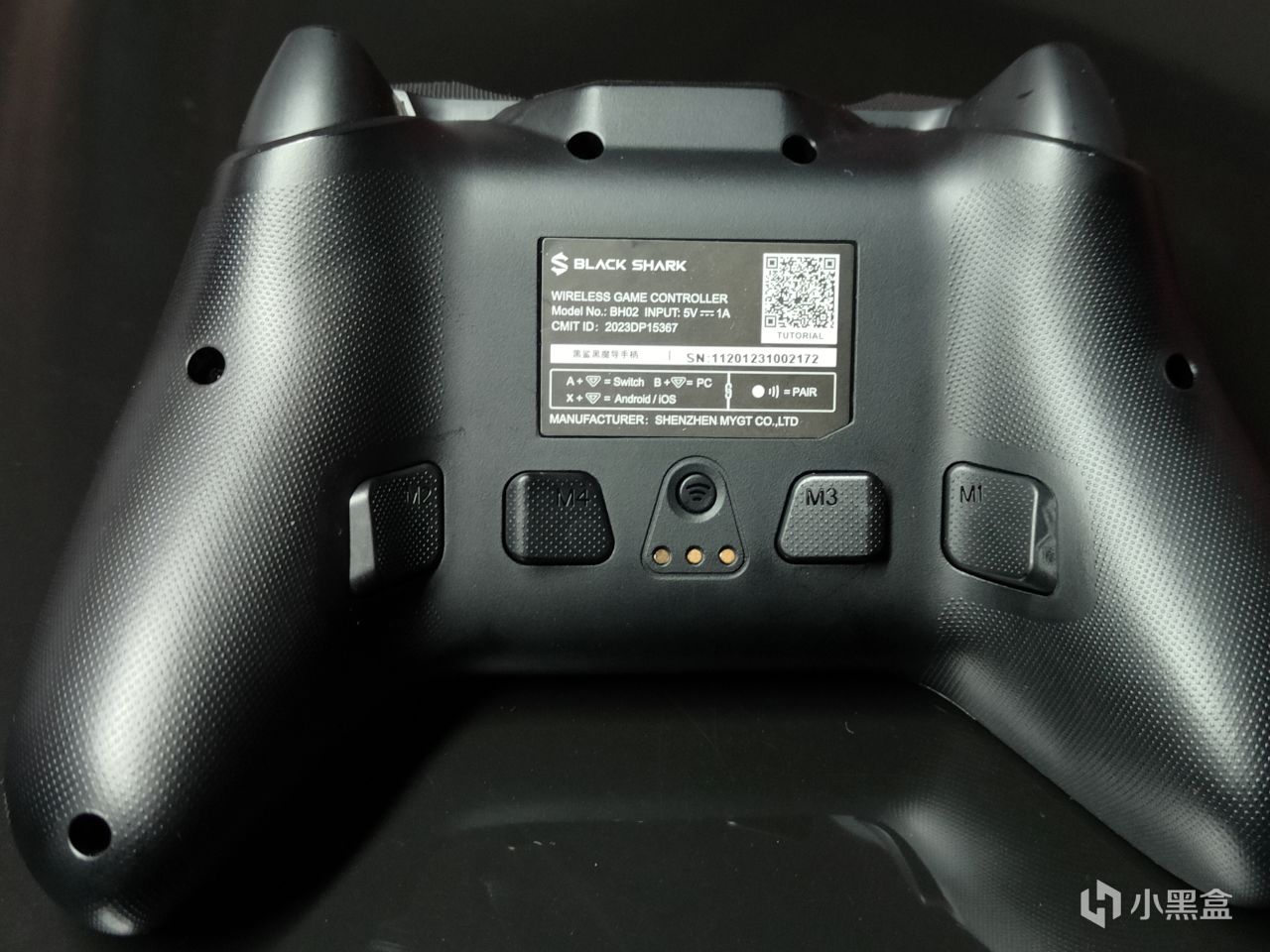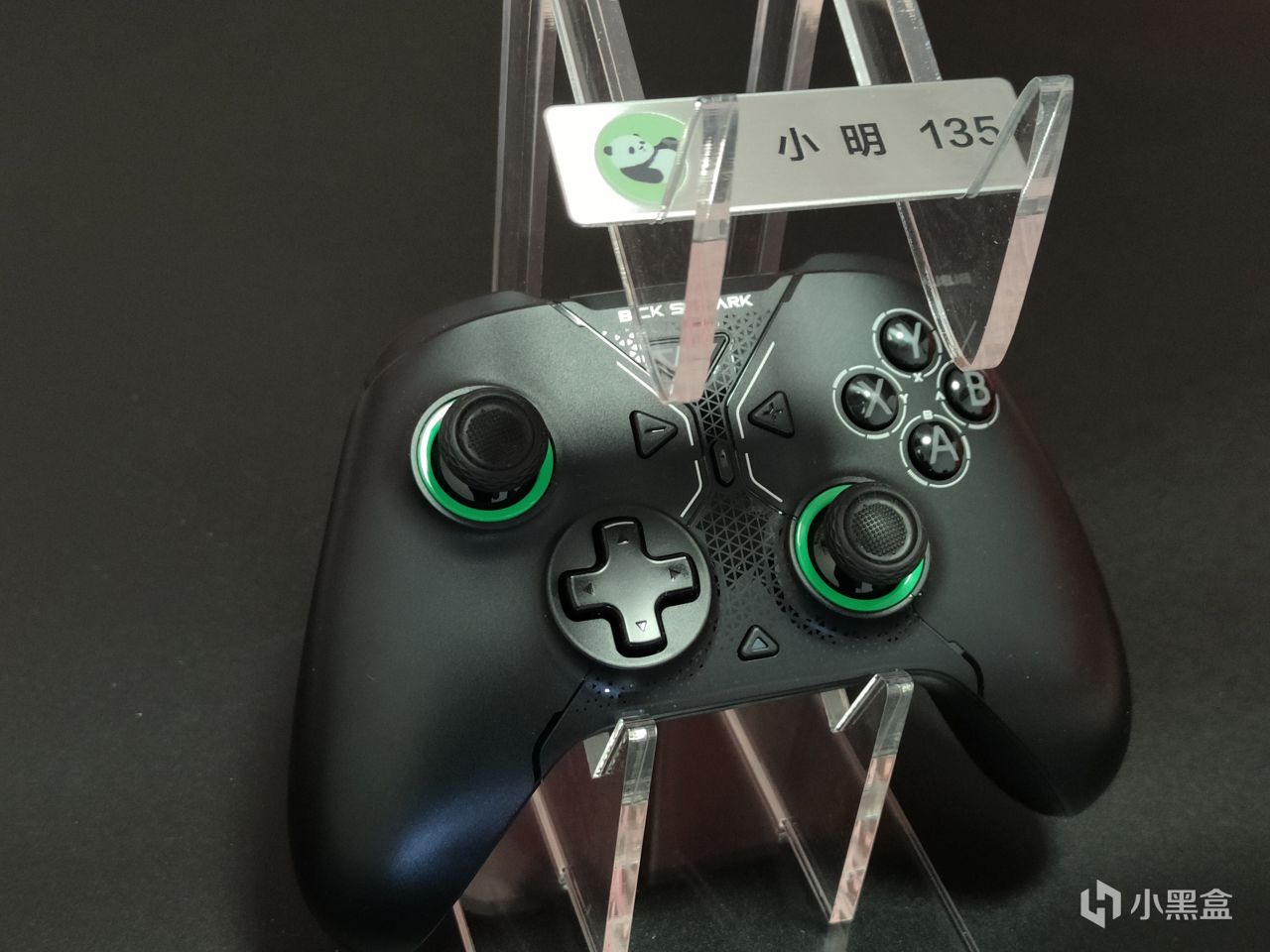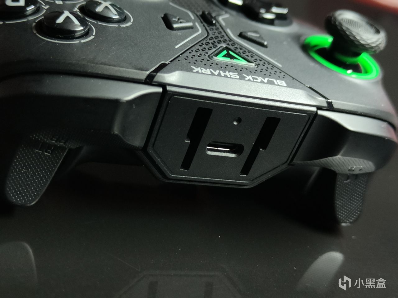 話不多說,咱們直奔主題。黑鯊包裝盒採用了黑客感十足的黑色和綠色作爲整體基調,正面由醒標誌性的充電底座加手柄構成,側面爲品牌英文名和宣傳語,背面則是簡概了本手柄的八大賣點,如霍爾線性扳機、6軸陀螺儀等等。
