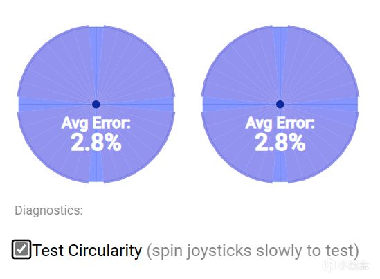 畫圓測試表現良好,手柄左右搖桿Avg Error率均爲2.8%。