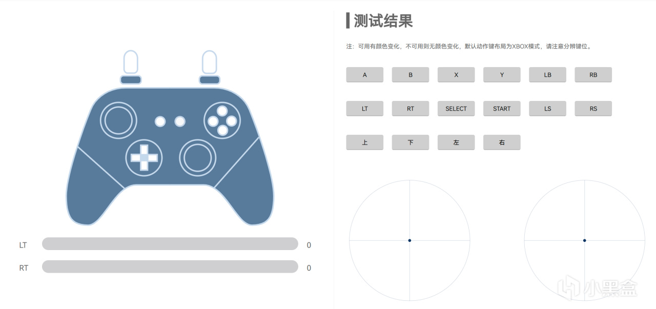 搖桿測試,無死區模式及普通模式表現都很出彩,無十字鍵吸附情況。圖中左側爲無死區模式,右側爲普通模式。