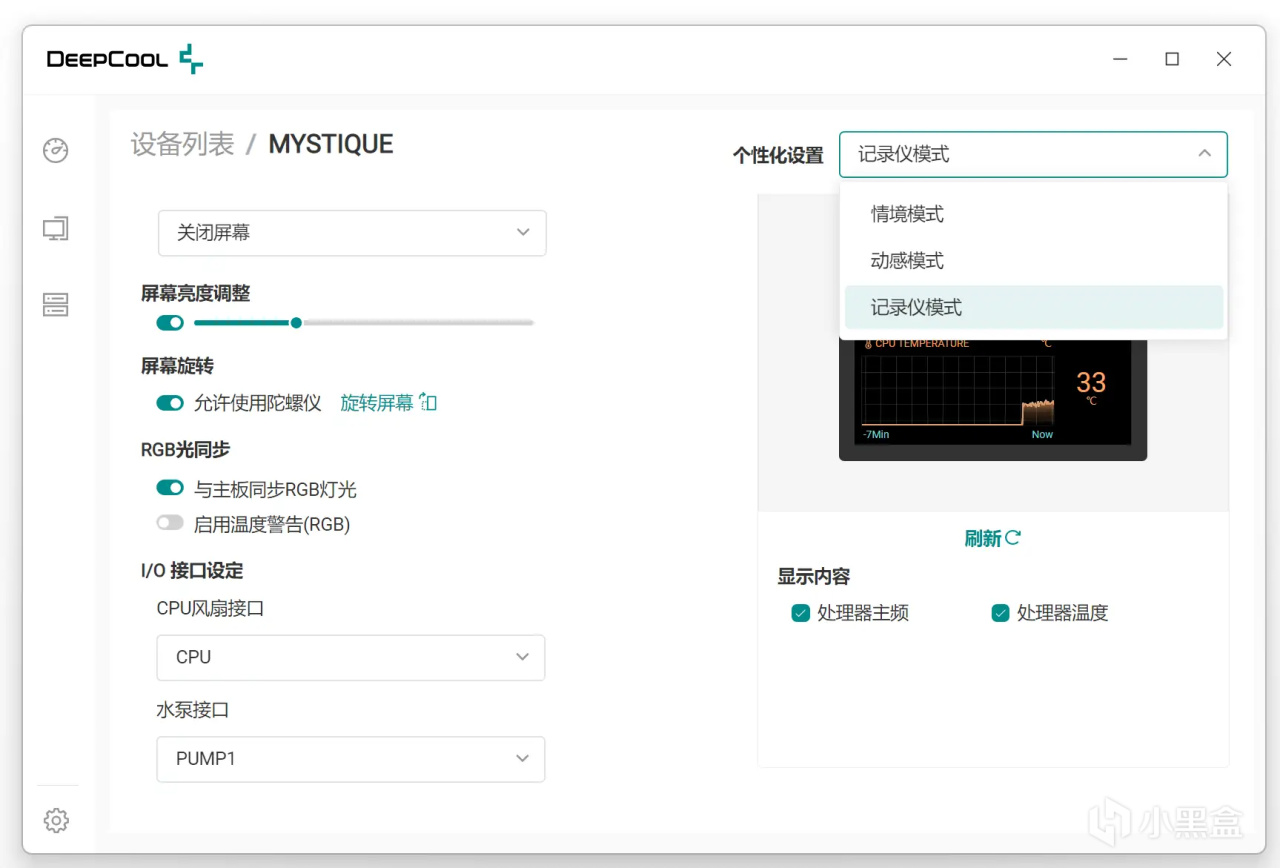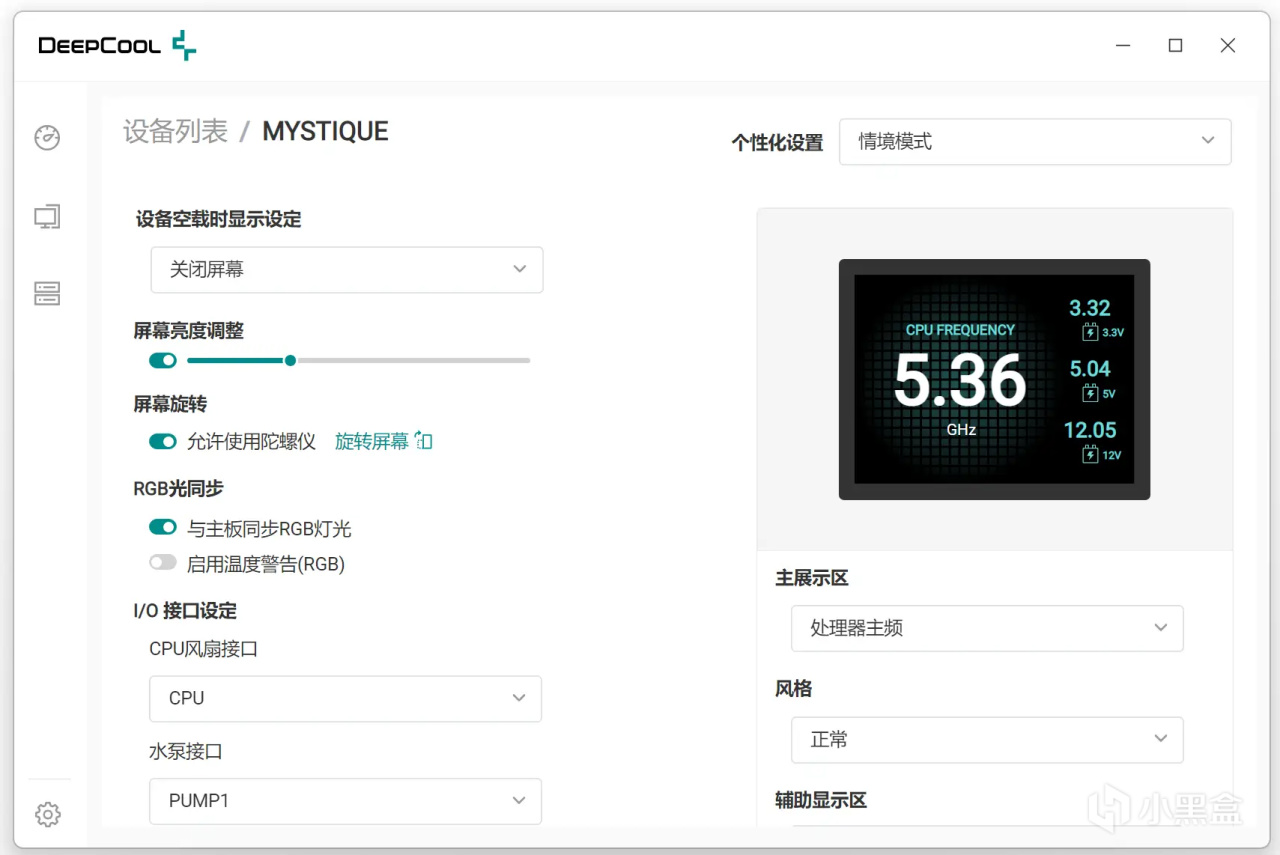 第三個項目則是詳細的設備控制。包括屏幕的亮度、旋轉、ARGB燈光同步以及屏幕的顯示信息個性化設置等等。