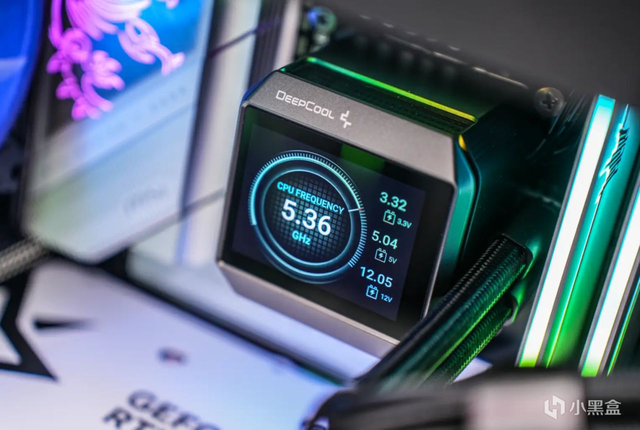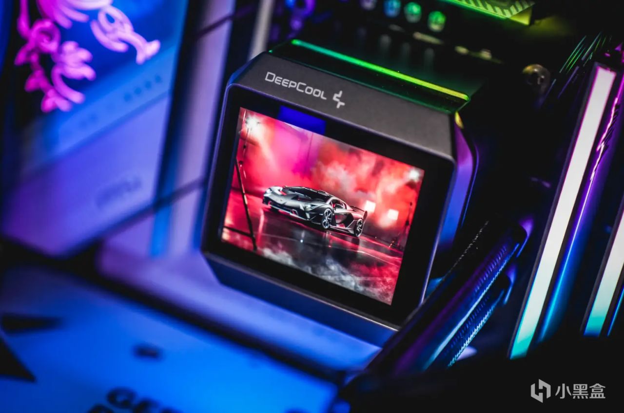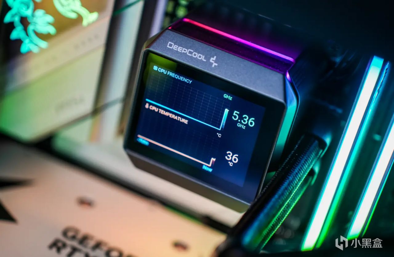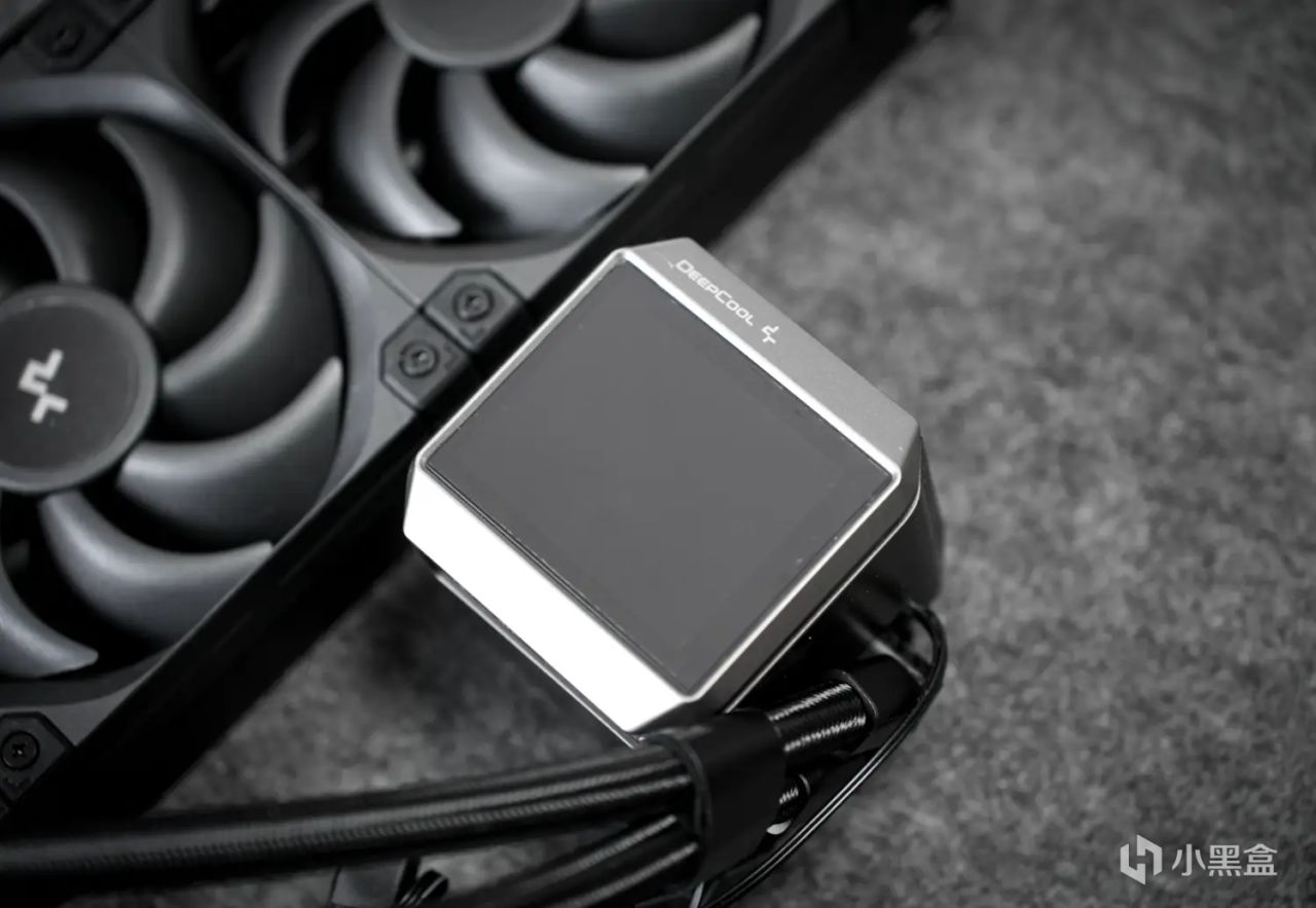 當然,要說該九州風神冰暴360水冷散熱器最吸睛的地方,當屬水冷頭。其並沒有採用ROG龍神/微星S360一樣的頂蓋分離設計,而直接是一個整體。水冷頭的頂部爲一塊2.8英寸真彩LCD數顯屏幕,支持1670萬色,分辨率也達到了640*480。最關鍵的是水冷頭的內部還搭載了陀螺儀,無需設置就可以自動識別安裝朝向,自動旋轉,從而給呈現出更好的視覺效果