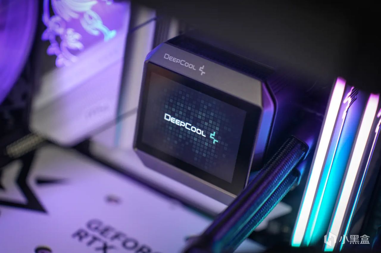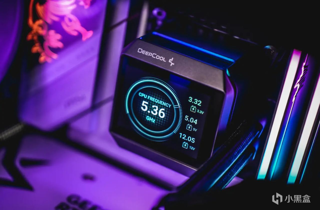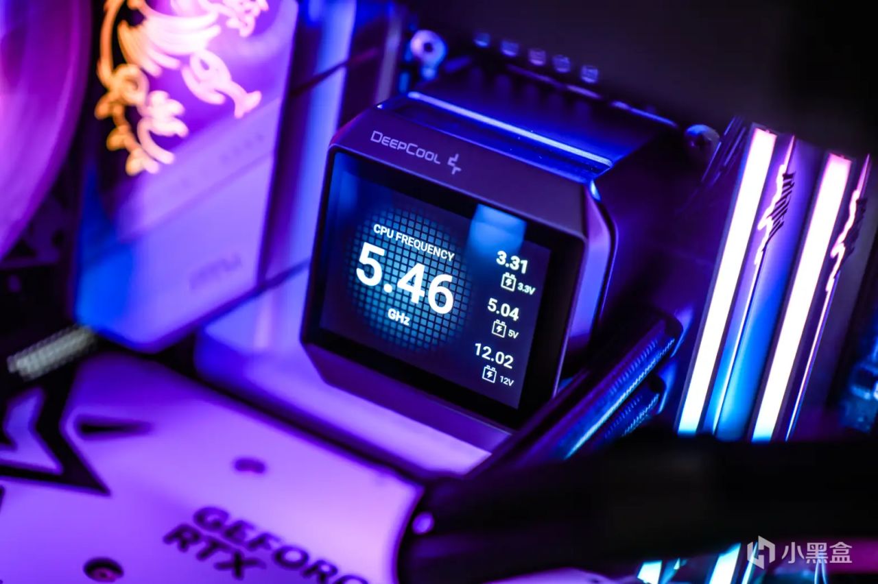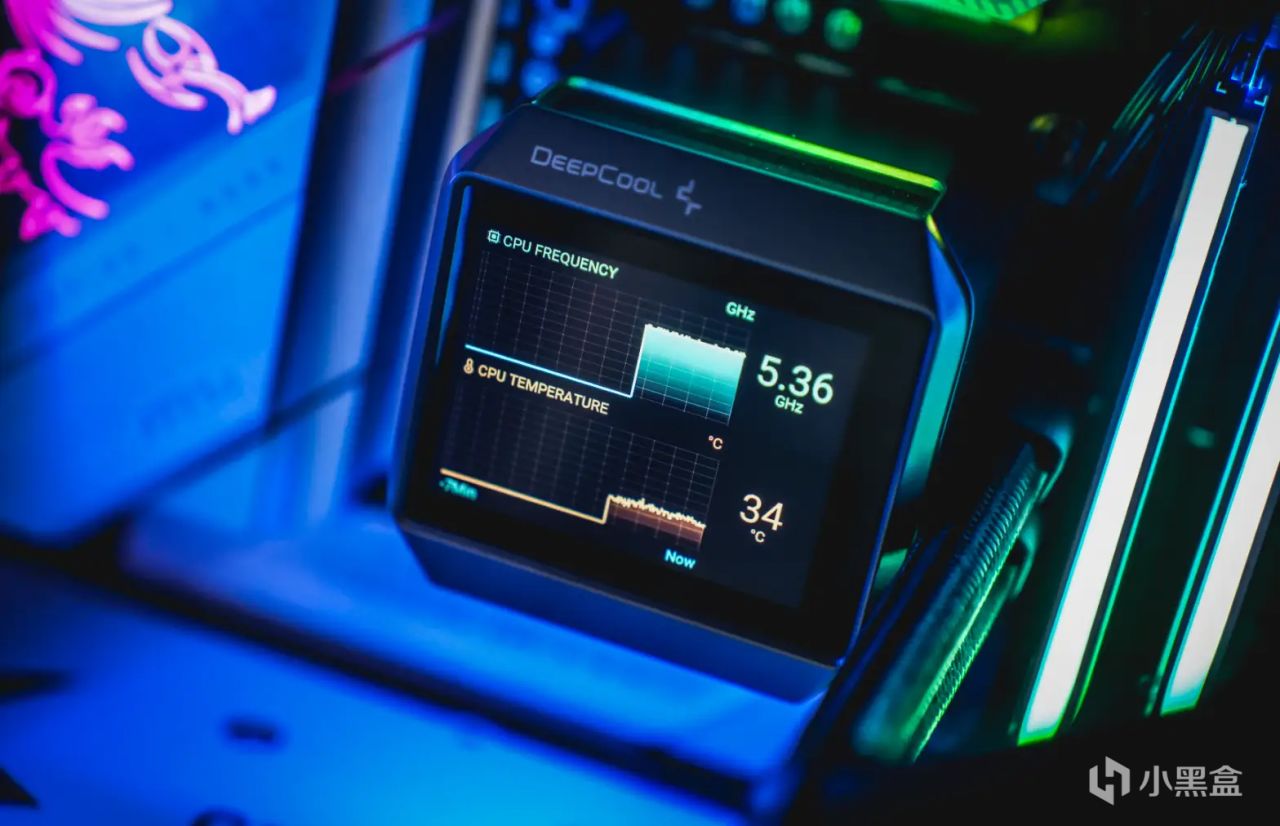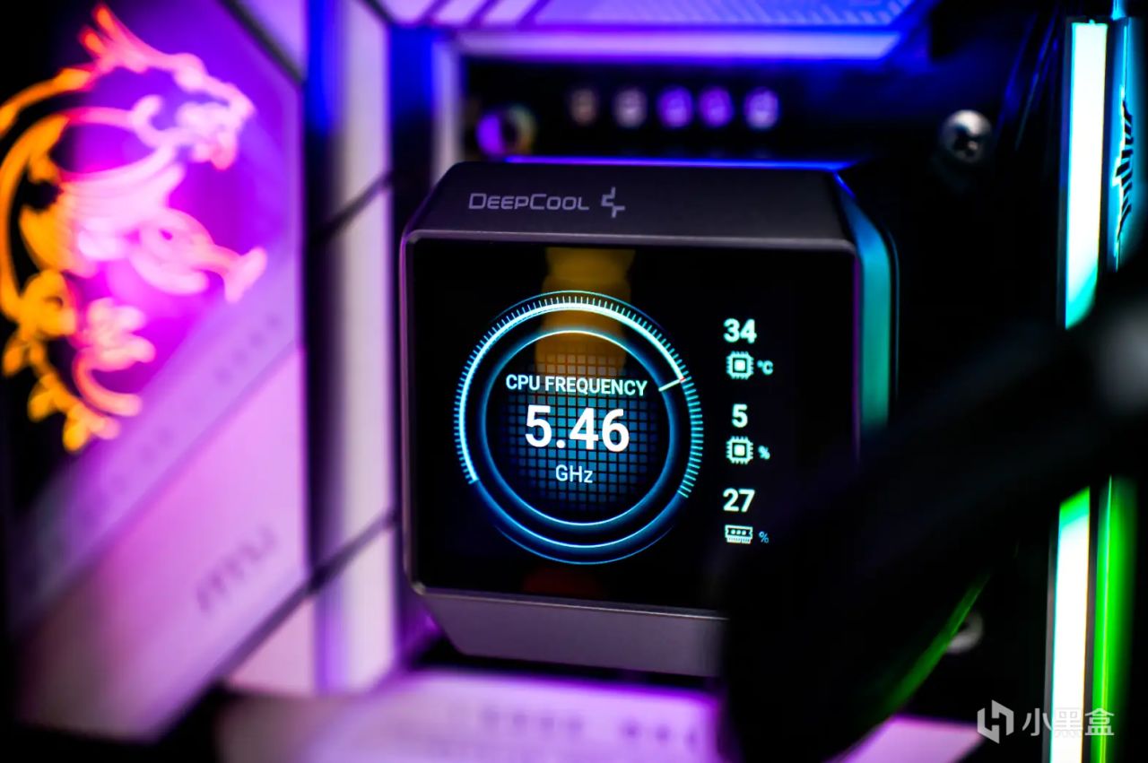 當然,要說該九州風神冰暴360水冷散熱器最吸睛的地方,當屬水冷頭。其並沒有採用ROG龍神/微星S360一樣的頂蓋分離設計,而直接是一個整體。水冷頭的頂部爲一塊2.8英寸真彩LCD數顯屏幕,支持1670萬色,分辨率也達到了640*480。最關鍵的是水冷頭的內部還搭載了陀螺儀,無需設置就可以自動識別安裝朝向,自動旋轉,從而給呈現出更好的視覺效果