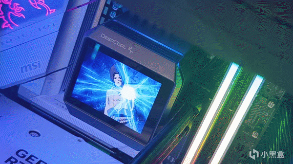 從實際顯示效果來看,得益於高亮度和不錯的分辨率,冰暴360的水冷頭屏幕顯示效果感覺要比其他水冷散熱器更爲細膩一些,播放GIF動畫也非常流暢。