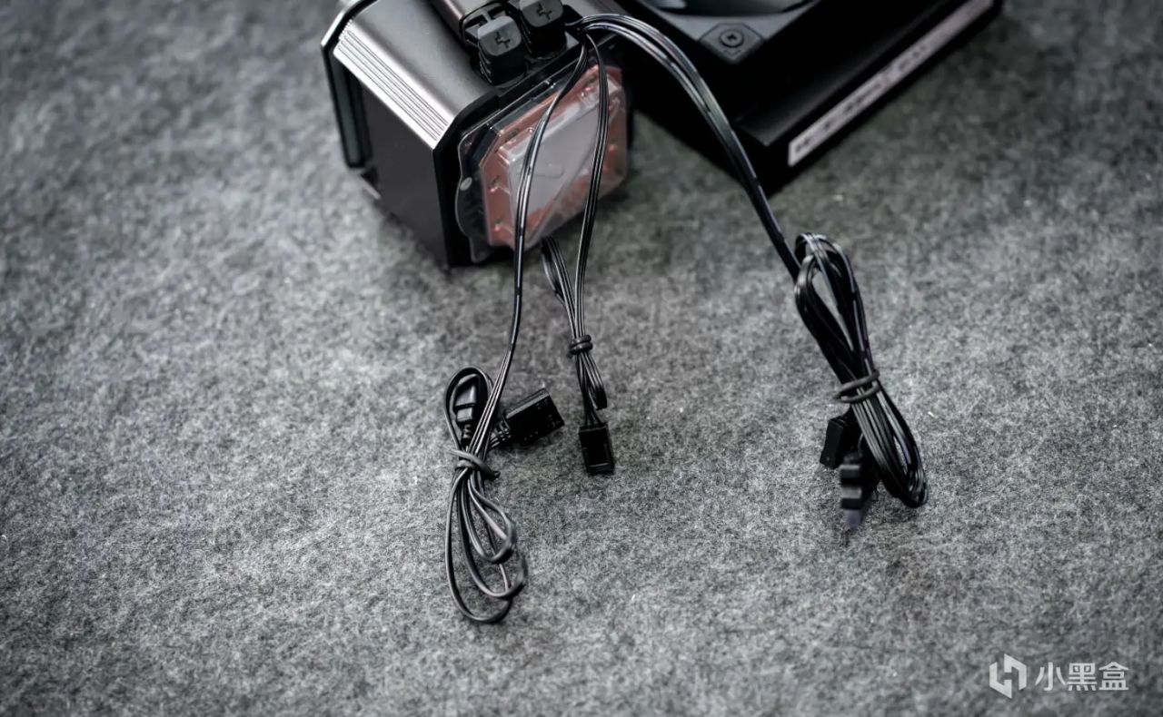 線材方面,水冷頭一共搭載了四根線,分別是3針5V ARGB、水泵、USB 2.0數據線以及SATA供電線。