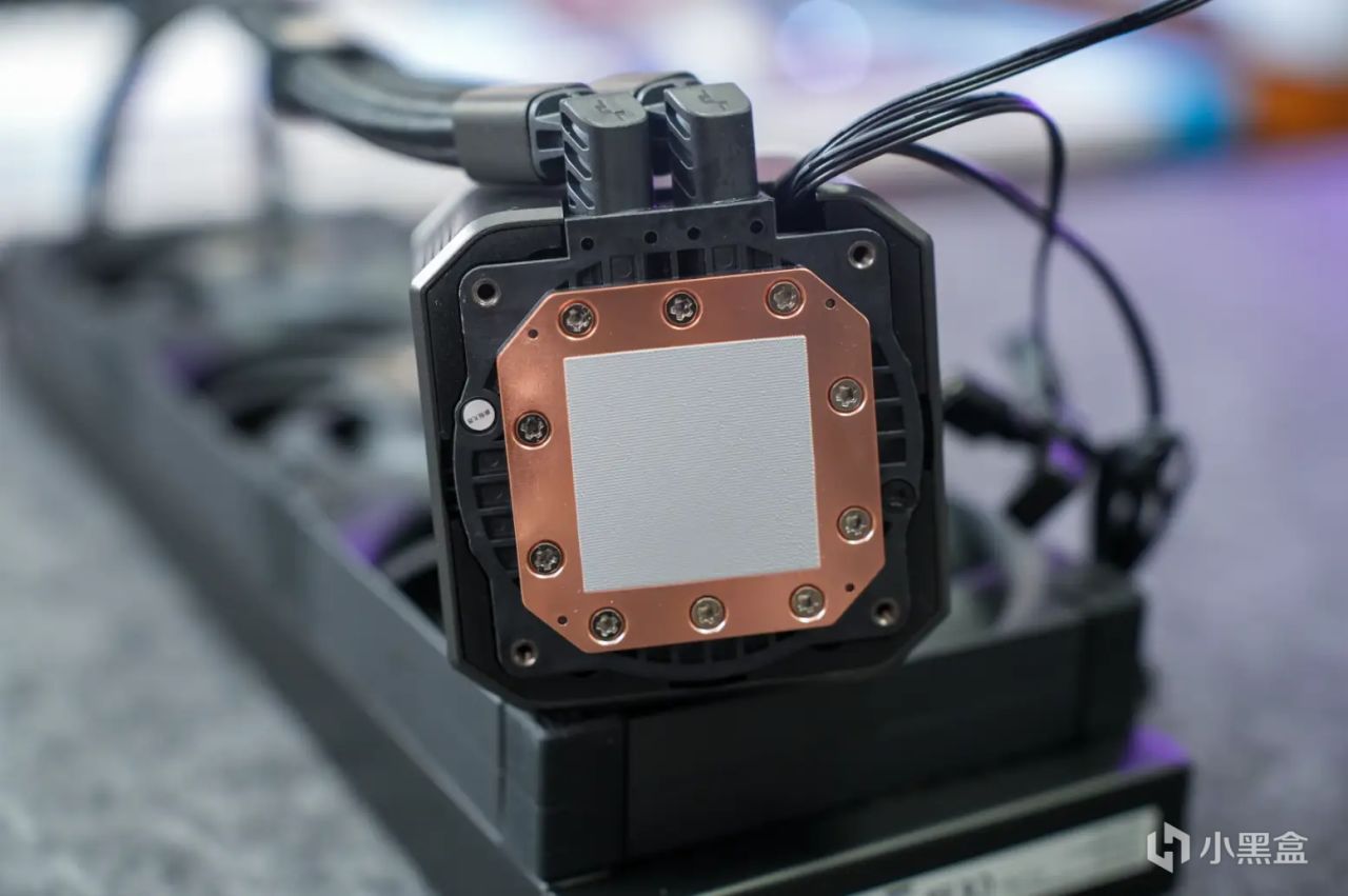 水冷頭下方的周圍一圈還帶有ARGB燈帶,可與主板實現ARGB燈光同步。