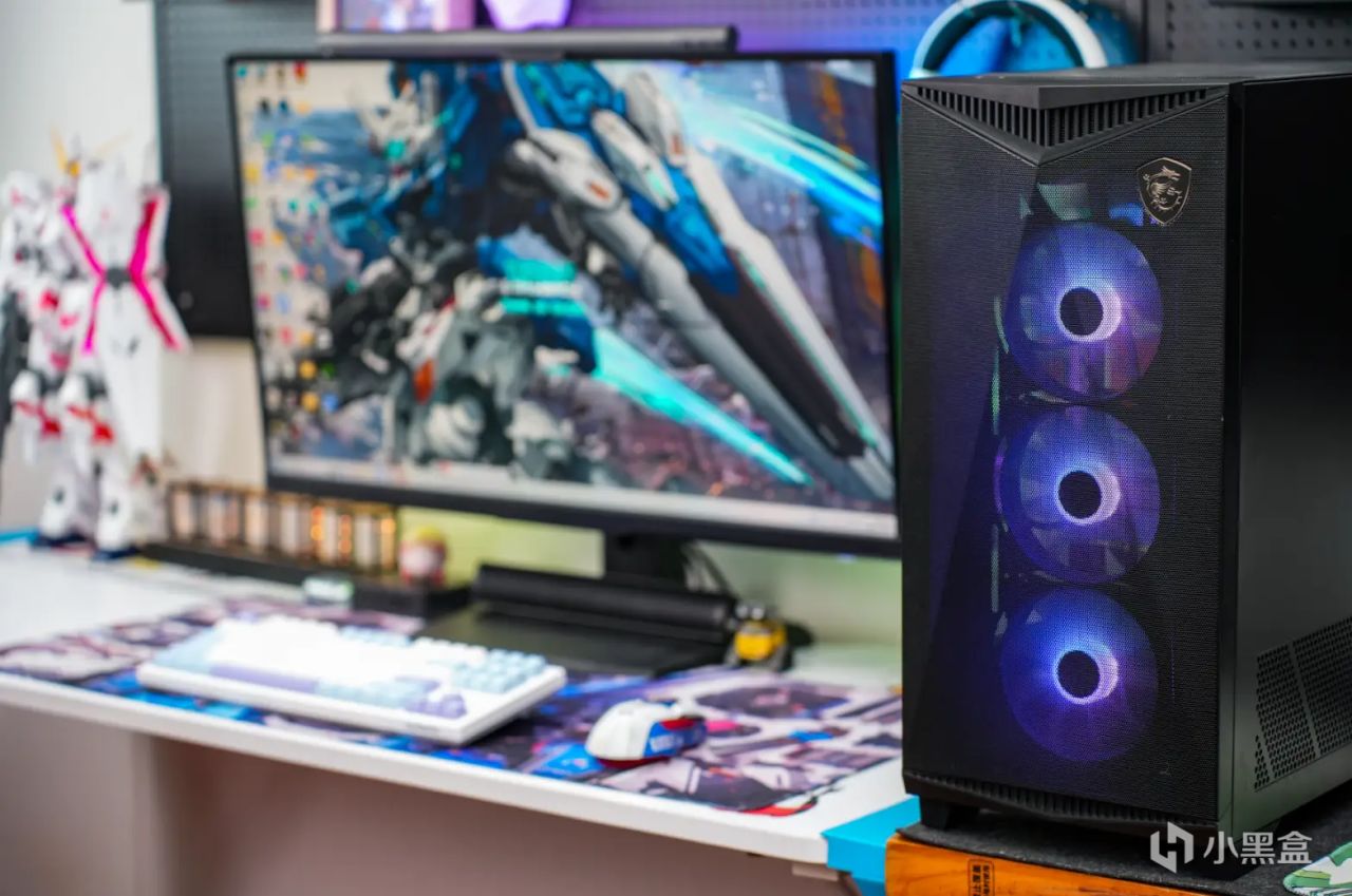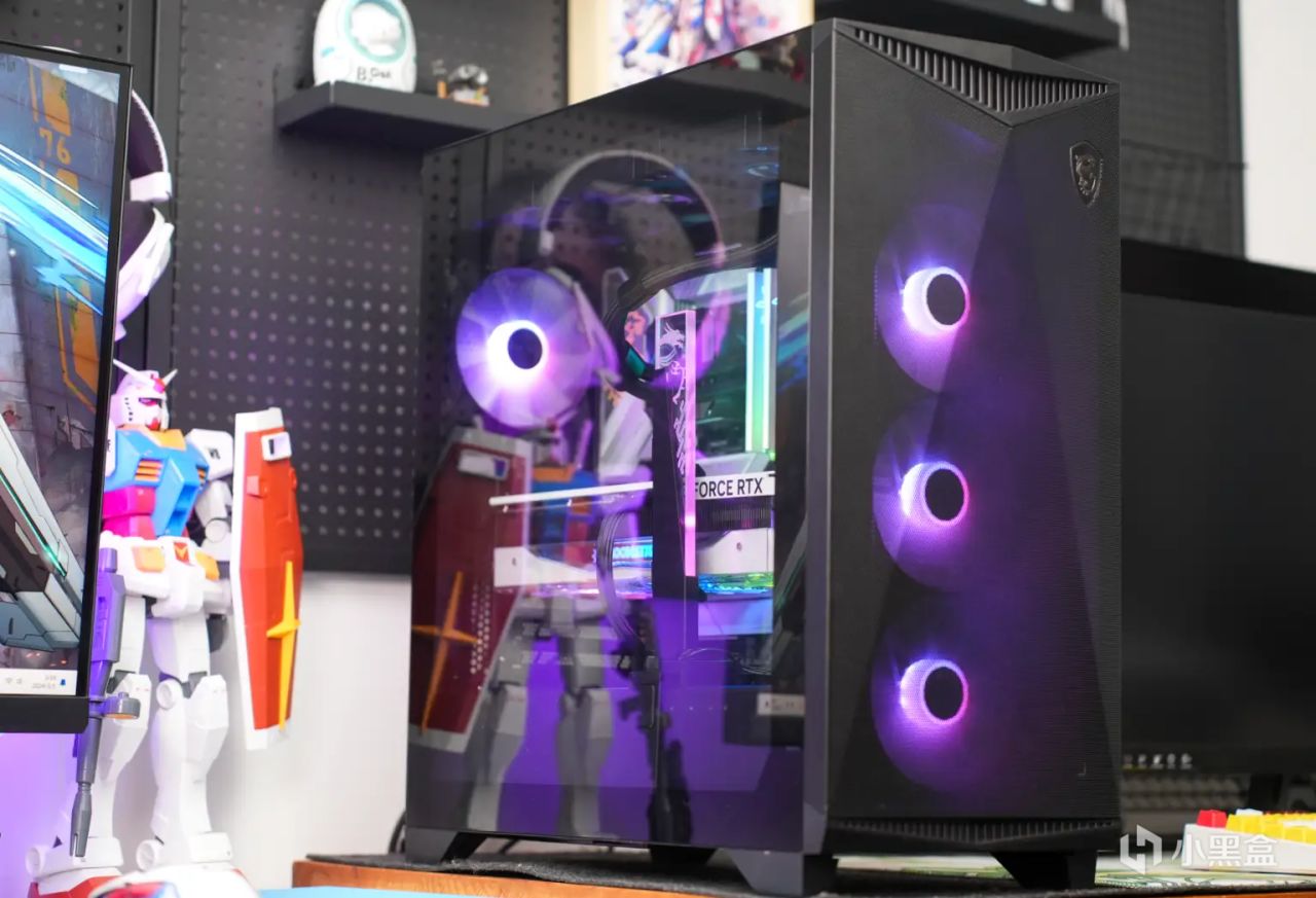 至於機箱,我選用的是微星氪金槍3,該機箱的定位中高端的中塔機箱,無論是外觀設計、散熱表現還是內部拓展能力都非常不錯。兼容性方面支持E-ATX主板;CPU散熱器高度最大支持175mm,顯卡支持長度也達到了360mm;並且還預裝了4個ARGB風扇以及一根支持ARGB燈效的顯卡支架,裝機效果非常不錯。