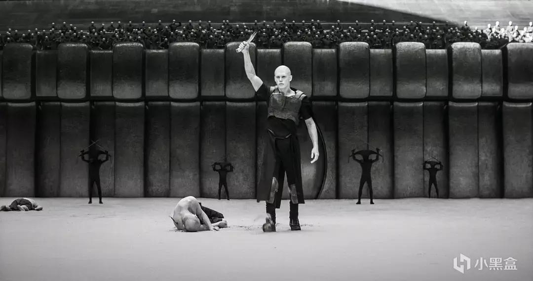 這場戲很棒,也很吵!人非常多,黑白的設定好像是和他們星球產業啥的有關,也是無形中增添了一份肅殺氛圍!