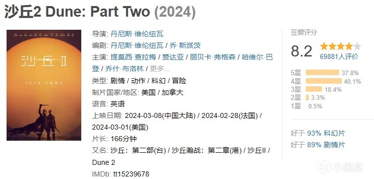 豆瓣開分8.2!貓眼預測內地總票房3.28億,目前IMDb8.9分,爛番茄93%鮮,爆米花95%,MTC79分