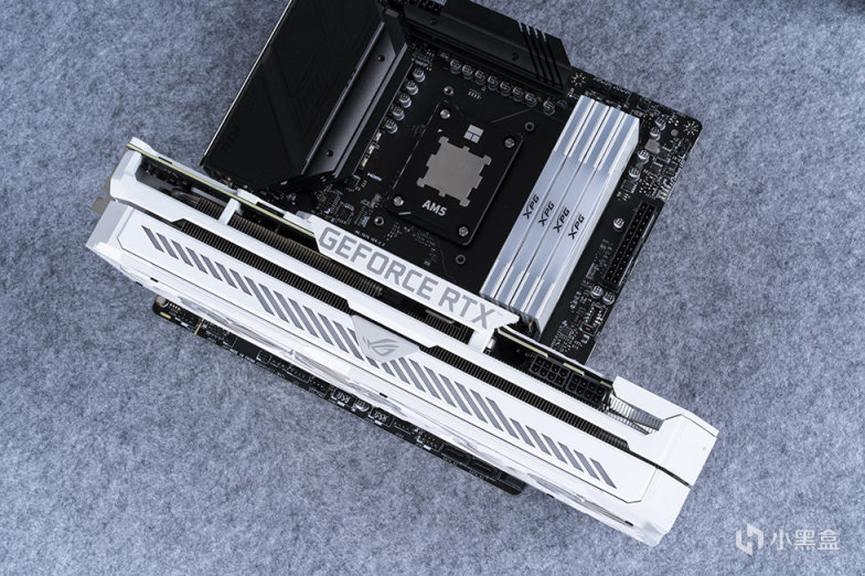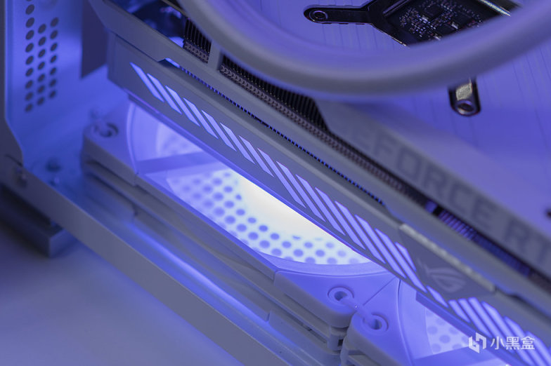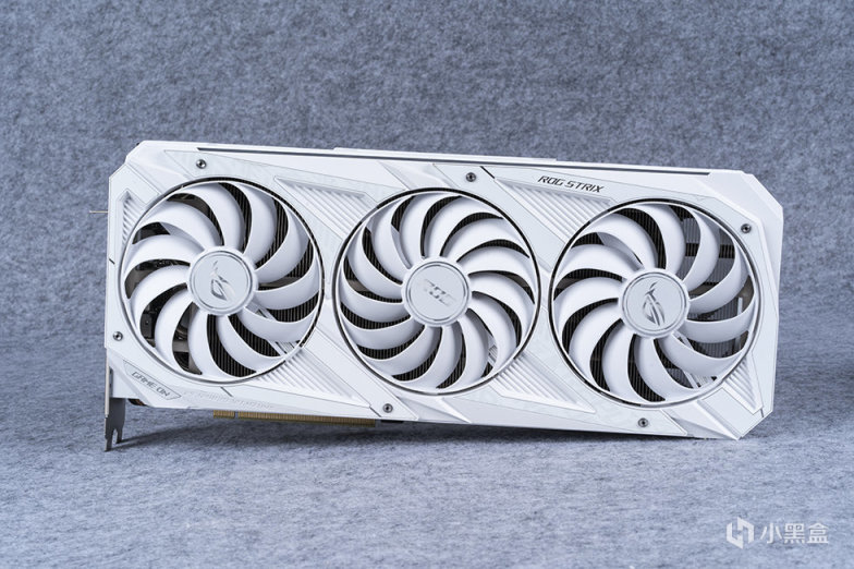 顯卡依舊選用了白色卡里目前最耐看的白猛禽3070, 顯卡通體純白色外觀,散熱外框有大量斜向線條裝飾。