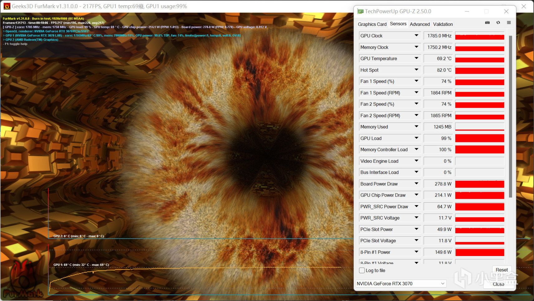 顯卡滿載:69.2℃,Furmark 10分鐘。