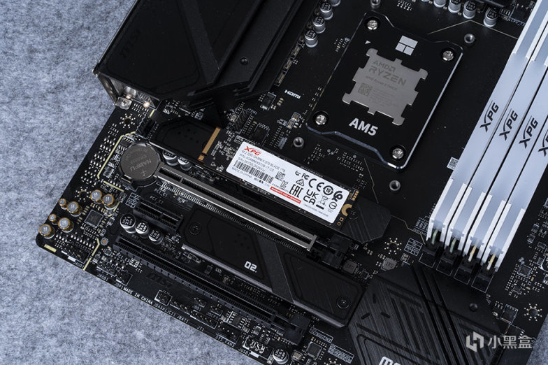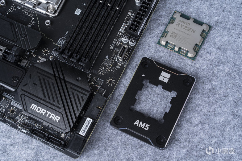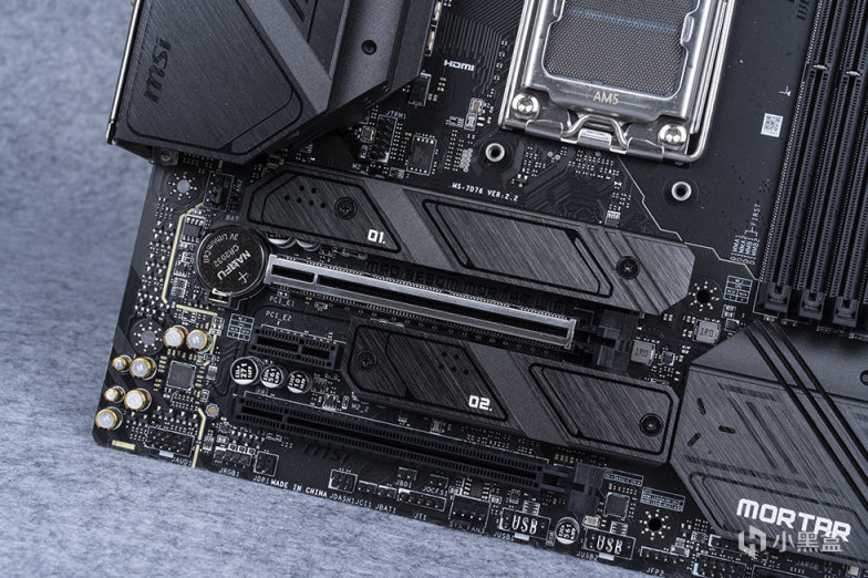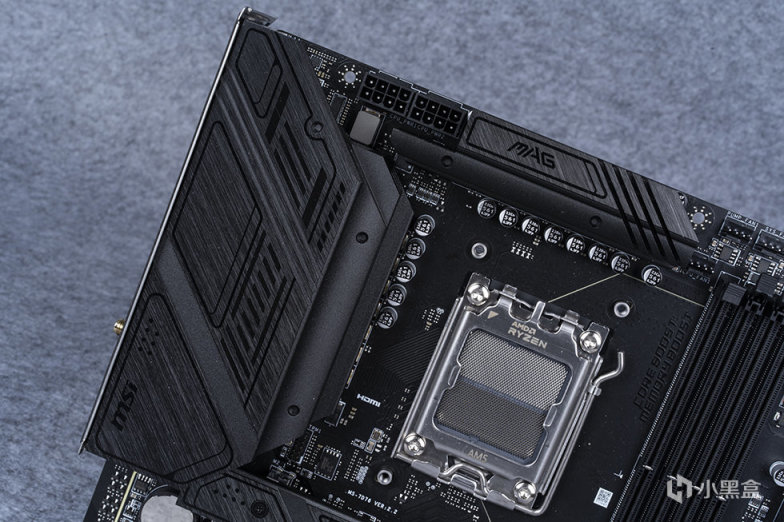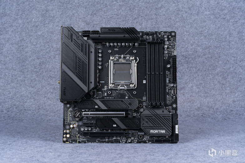 主板使用微星 MAG B650M MORTAR WIFI,基於AMD B650芯片組,區別於之前的版本,主板的VRM(CPU供電區域),SSD安裝位,南橋芯片位置均覆蓋的鋁製散熱裝甲由銀色換成了黑色,用在白色主題的箱子裏有點怪怪的,講究看吧。