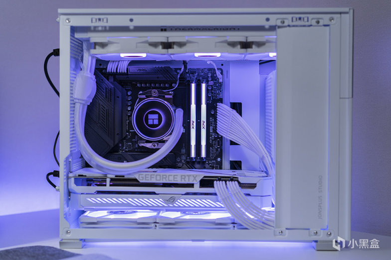 可以看到安裝水冷的話會感覺內部很空,視覺感官不飽滿,但是散熱性能會得到提升,利民 Frozen Notte 360冰封魔境整體的散熱效能還是很不錯的。如果你要哪種塞滿機箱的飽和感,建議安裝雙塔風冷,視覺效果會好很多。
