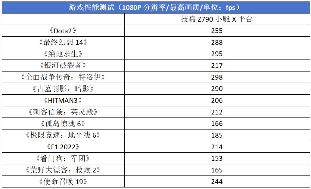 在大家最關心的遊戲性能方面,我們選擇了十幾款熱門遊戲進行測試。綜合款遊戲的幀率表現來看,技嘉Z790小雕X主板搭配i7-13700K和RTX 4090 高端遊戲平臺的表現同樣出色,不論是電競網遊還是3A遊戲大作的幀率都表現都十分出色,充分發揮了處理器和顯卡的應有性能,表明該主板的性能全面無短板。