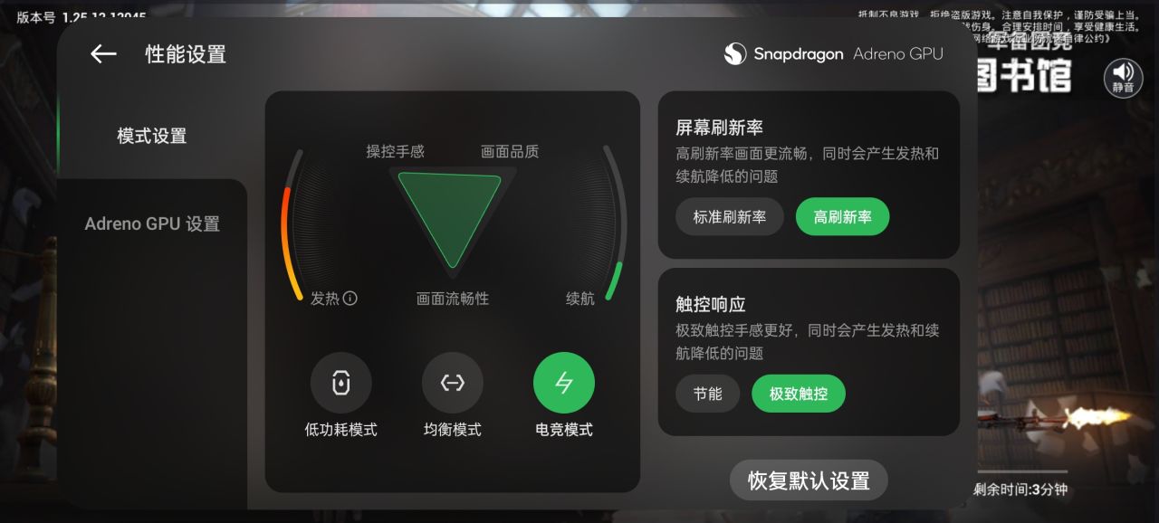 ▲進入性能界面,可以對低功耗模式、均衡模式與電競模式的性能進行個性化微調,包括刷新率與觸控響應,十分適合對遊戲體驗有很高要求的電競發燒友。