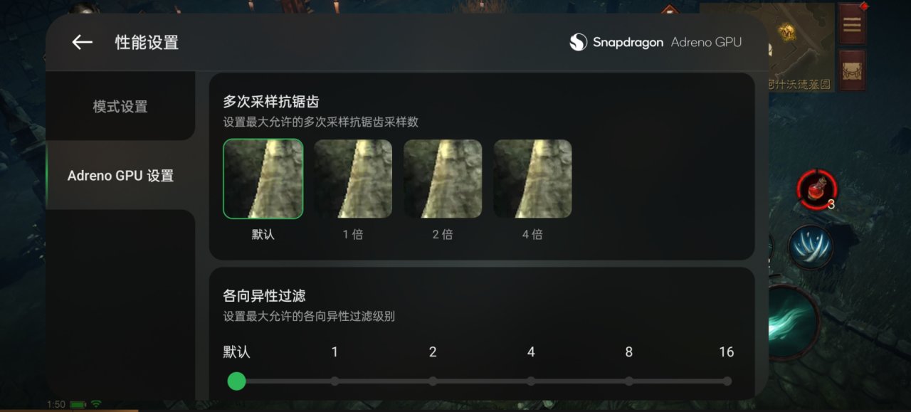 ▲另外,在Adreno GPU選項中,可以調用高通GPU的高端功能,包括通過多次採樣抗鋸齒來提升畫面效果等等,仔細調教後,遊戲的流暢度與畫質都會得到進一步的提升。
