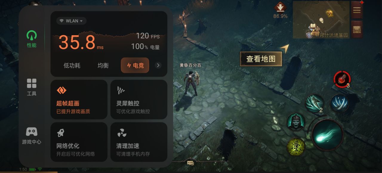 ▲另外,一加還有自研的靈犀觸控技術,遊戲熱區的識別更加靈敏精準,配合着自研的溼手觸控技術,長時間打遊戲時手出汗也不會影響操作,爽歪歪。雖然《暗黑不朽》是支持手柄的,不過我現在就是偶爾玩玩,也就沒隨身帶手柄,只是將靈犀觸控開到最大,實測效果並不會比物理手柄差多少,玩這種刷刷刷的遊戲是遊刃有餘的。