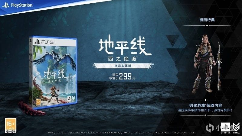 《地平線 西之絕境》國行版已於3月21日正式發售,包括PS5及PS4的數字標準版、數字高級版,以及PS5實體標準版光盤。標準版售價299元,高級版售價349元,數字高級版升級包同步上線,售價50元。3月21日至4月3日期間購買,還可享初回特典。