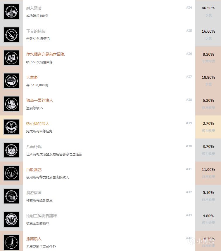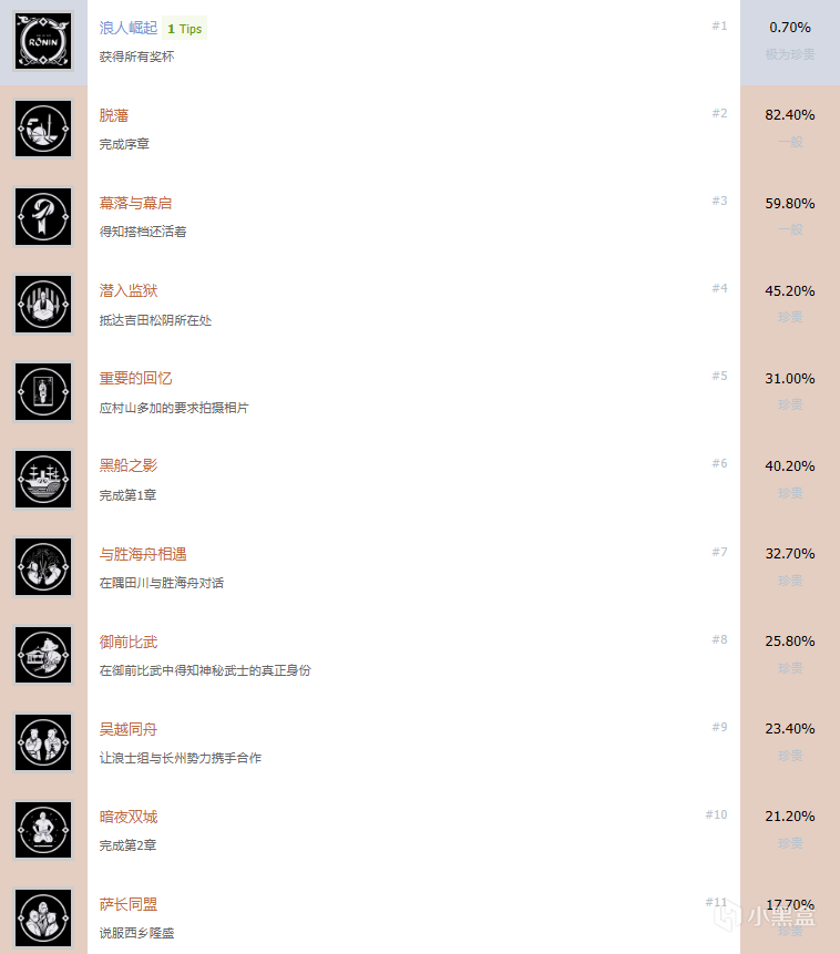 《浪人崛起》成就路線: