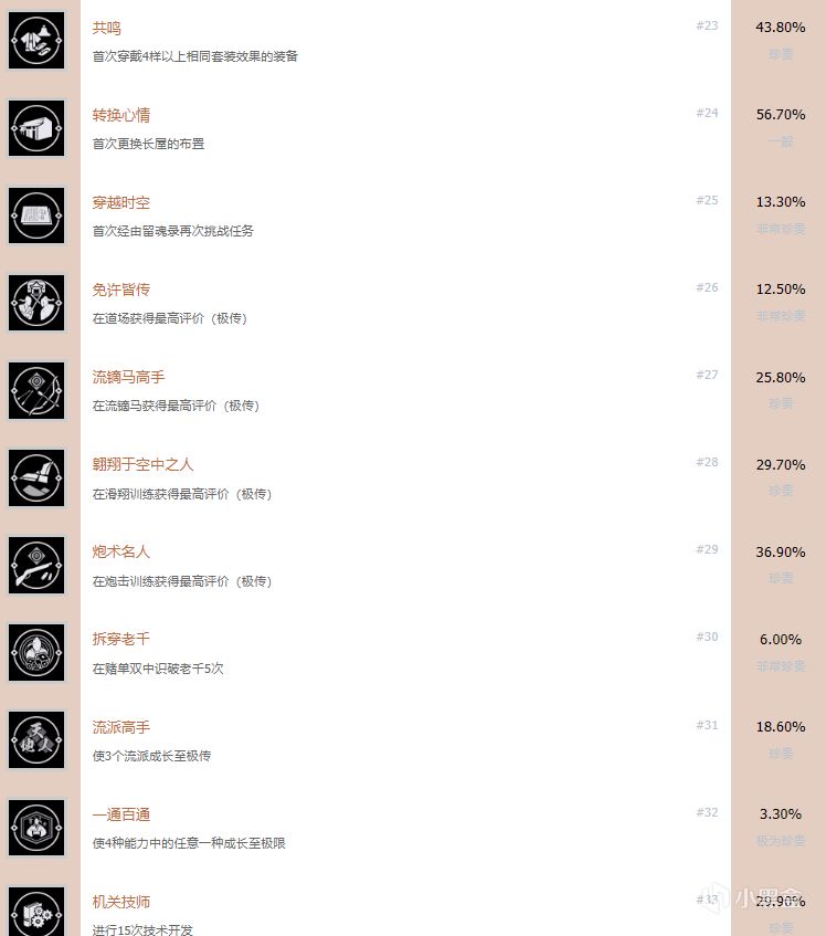 收集成就如下: