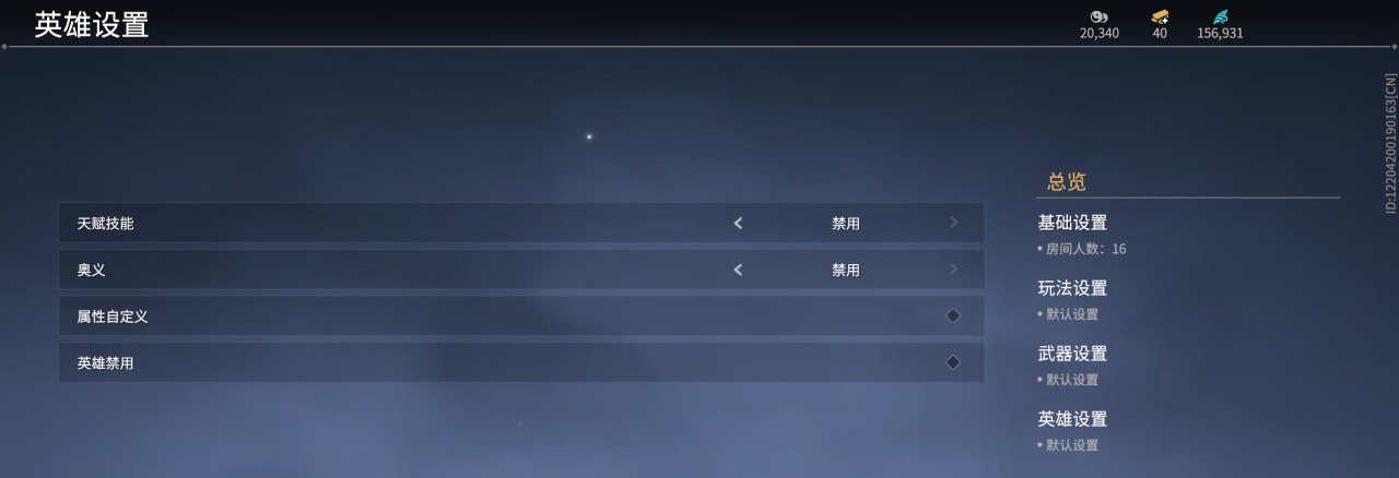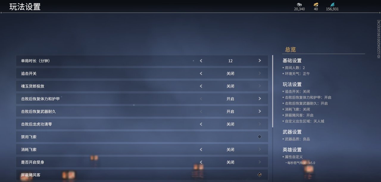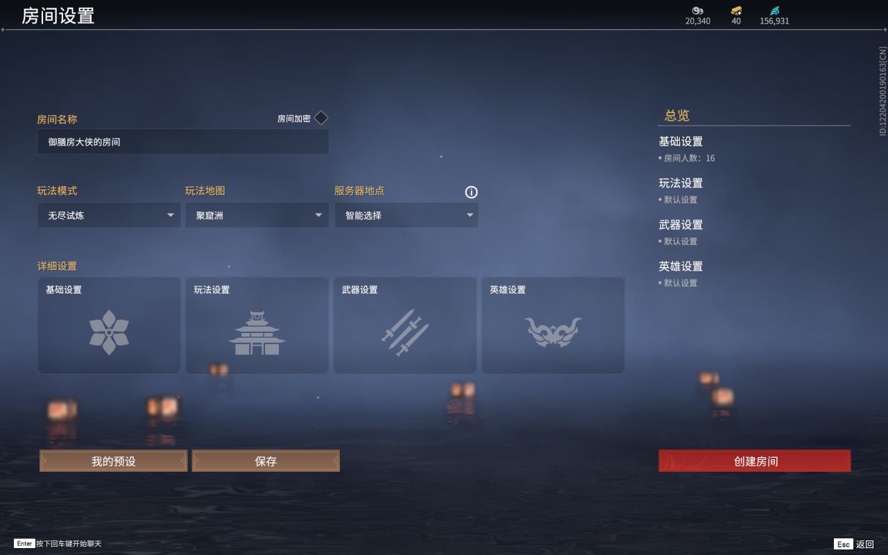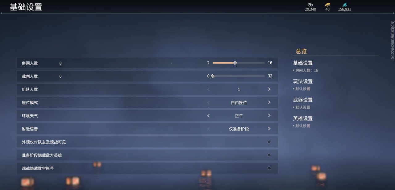 大致按下圖設置就好,房間人數1v1就改爲2,多人按自己想法選擇偶數人數就行,最多16人