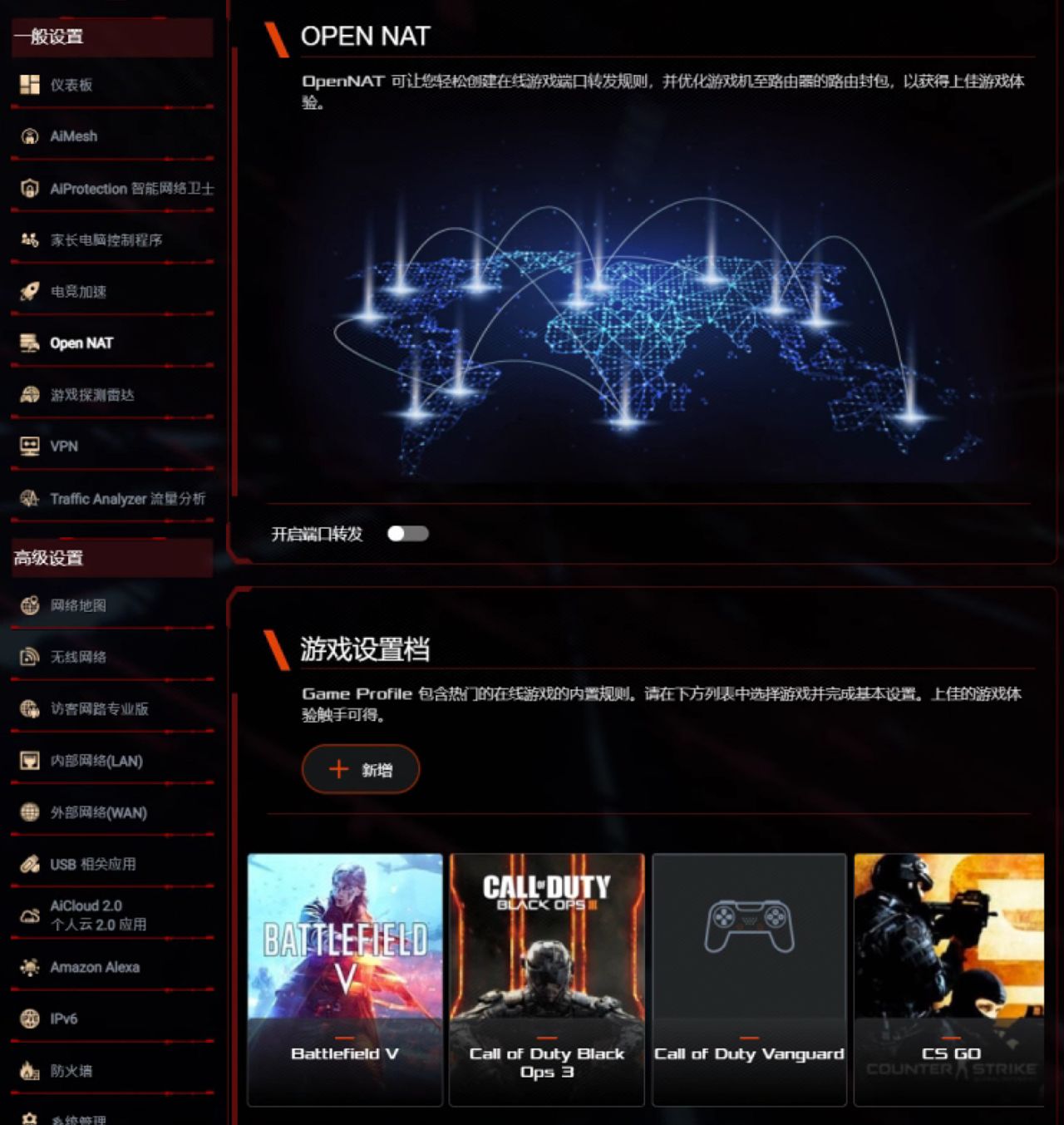至於內置的Open NAT功能是一項旨在優化在線遊戲體驗的設置。這項功能允許用戶打開端口,通過預設的遊戲配置文件,使得遊戲數據包能夠順利通過防火牆,連接到您的家庭網絡。這樣做可以減少在玩在線遊戲時可能遇到的連接問題,提高遊戲的連通性和穩定性。