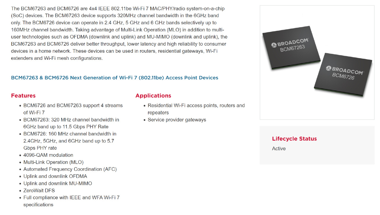 而海外發行版的BE98和BE98 Pro在此基礎上還額外有6GHz頻段專屬的BCM67263芯片。BCM67263在6Ghz頻段最大可以支持320Mhz頻寬,BCM6726只支持160Mhz頻寬,二者均支持6GHz頻段。如果工信部後續將5925-6425MHz劃歸WiFi 7使用,GT-BE96依然能支持6GHz網絡。